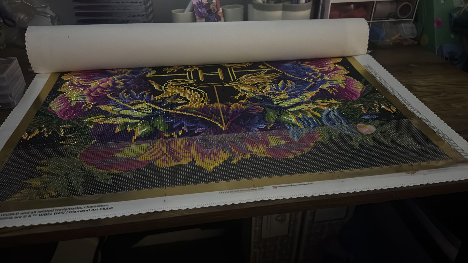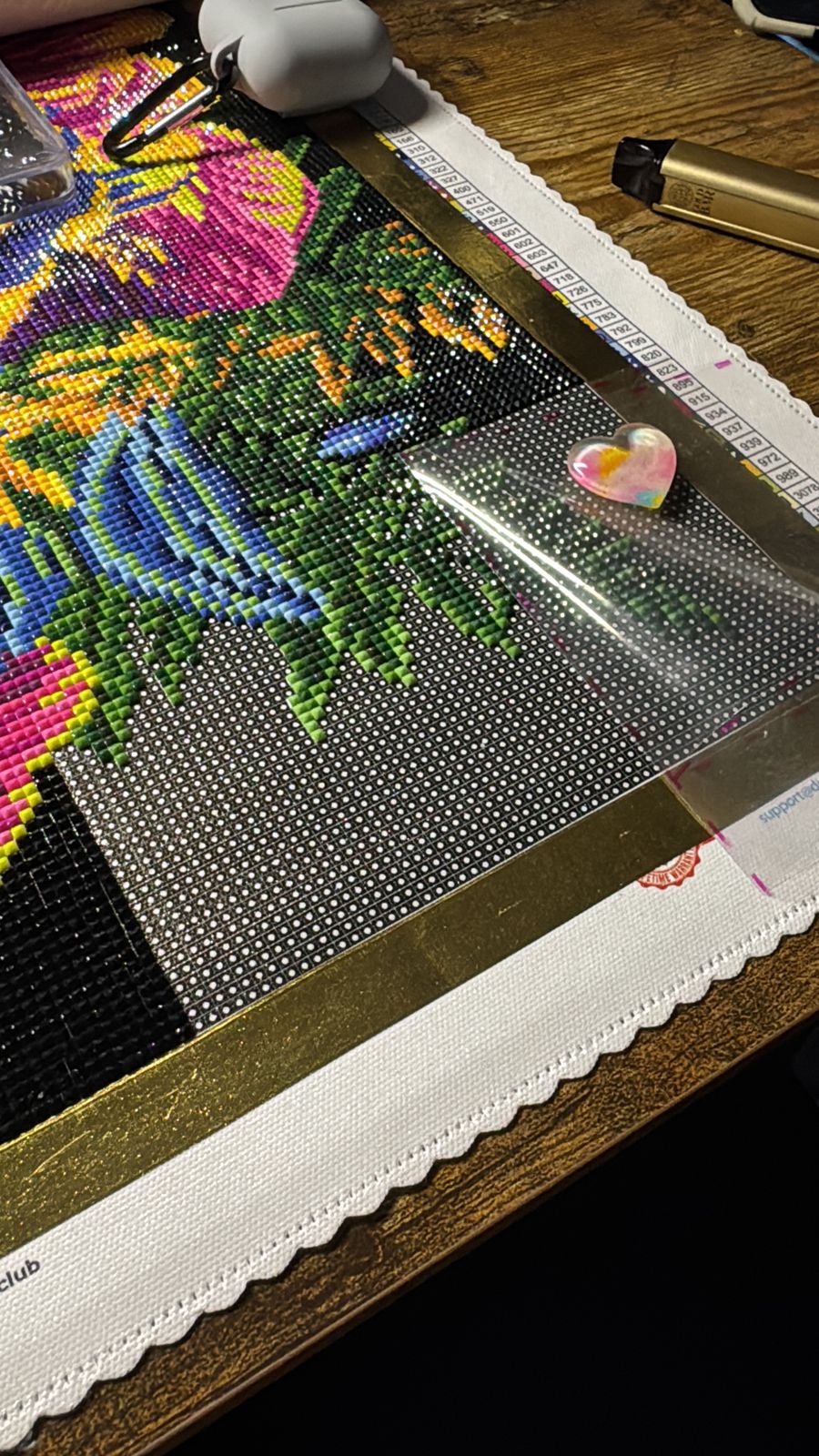 My first diamond art club piece. I was amazed at the beauty of the drills. It has 4 ab drills. It’s mixed with a lot of color blocking and confetti. I highly enjoyed this piece.
