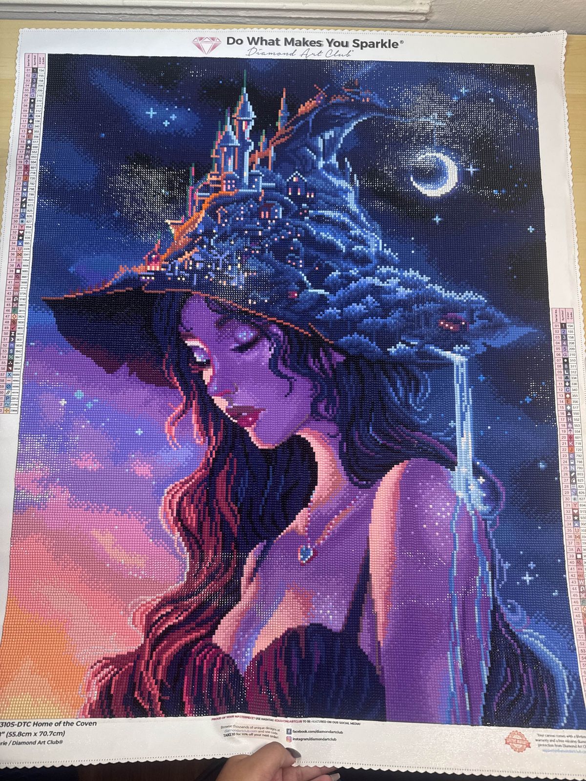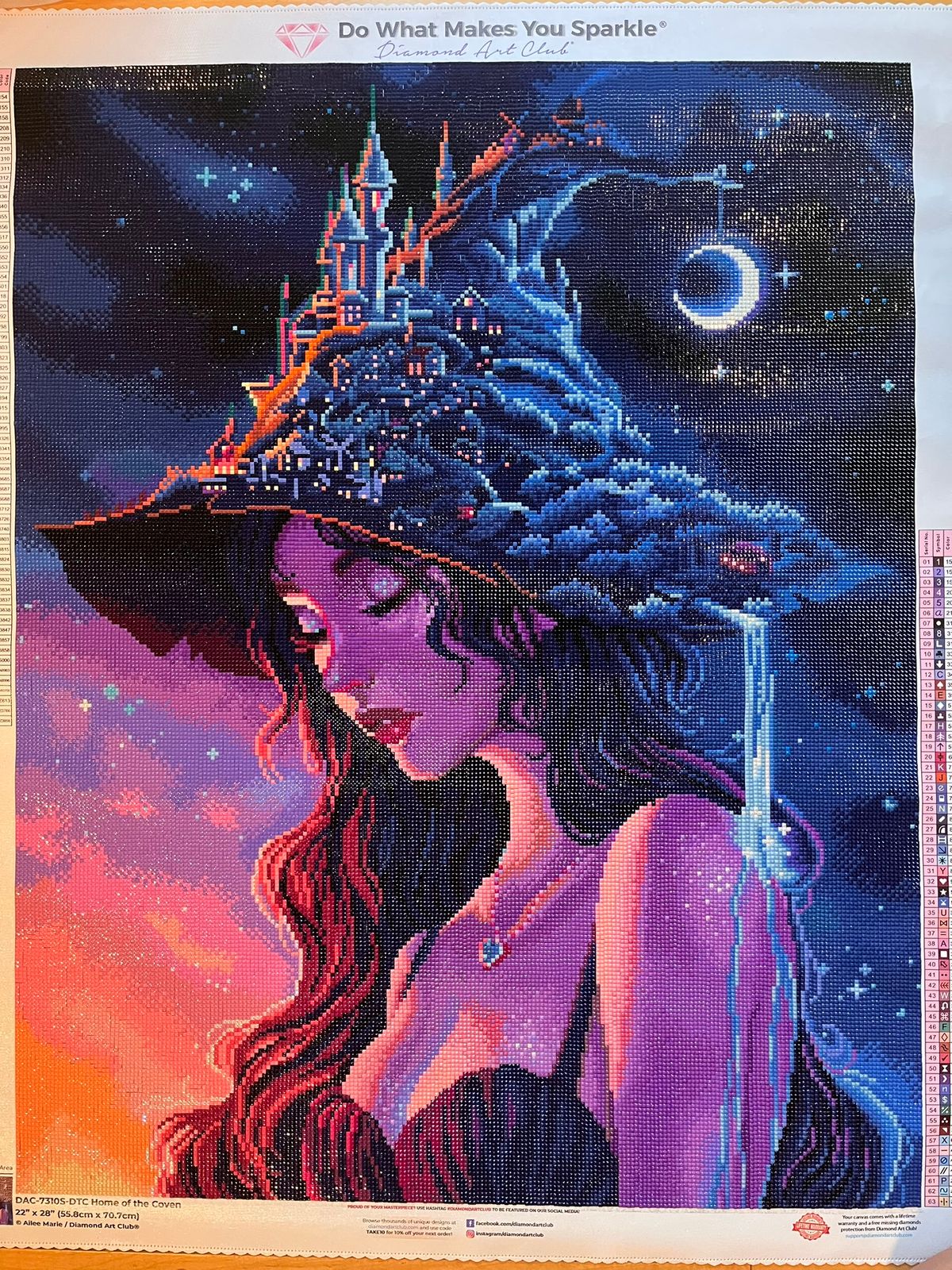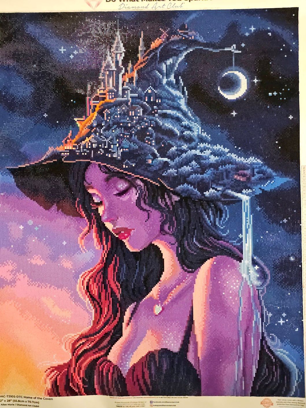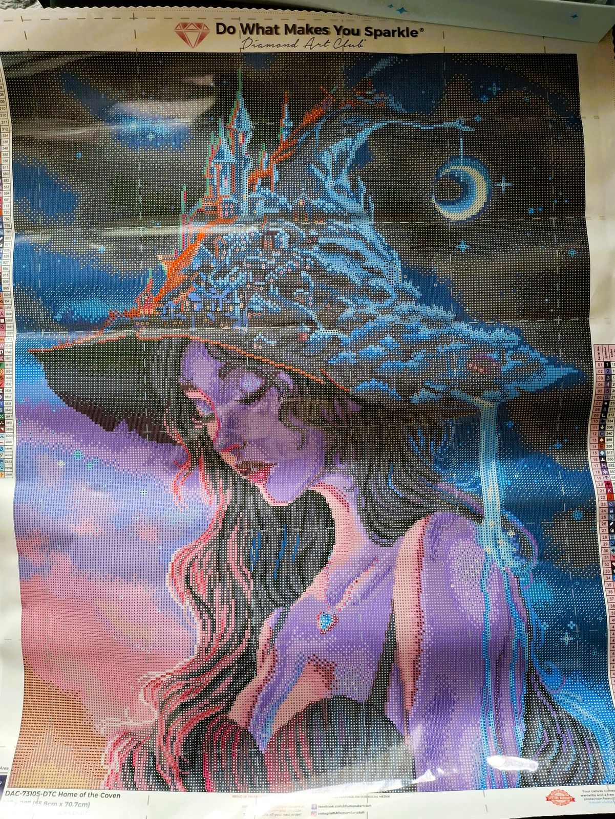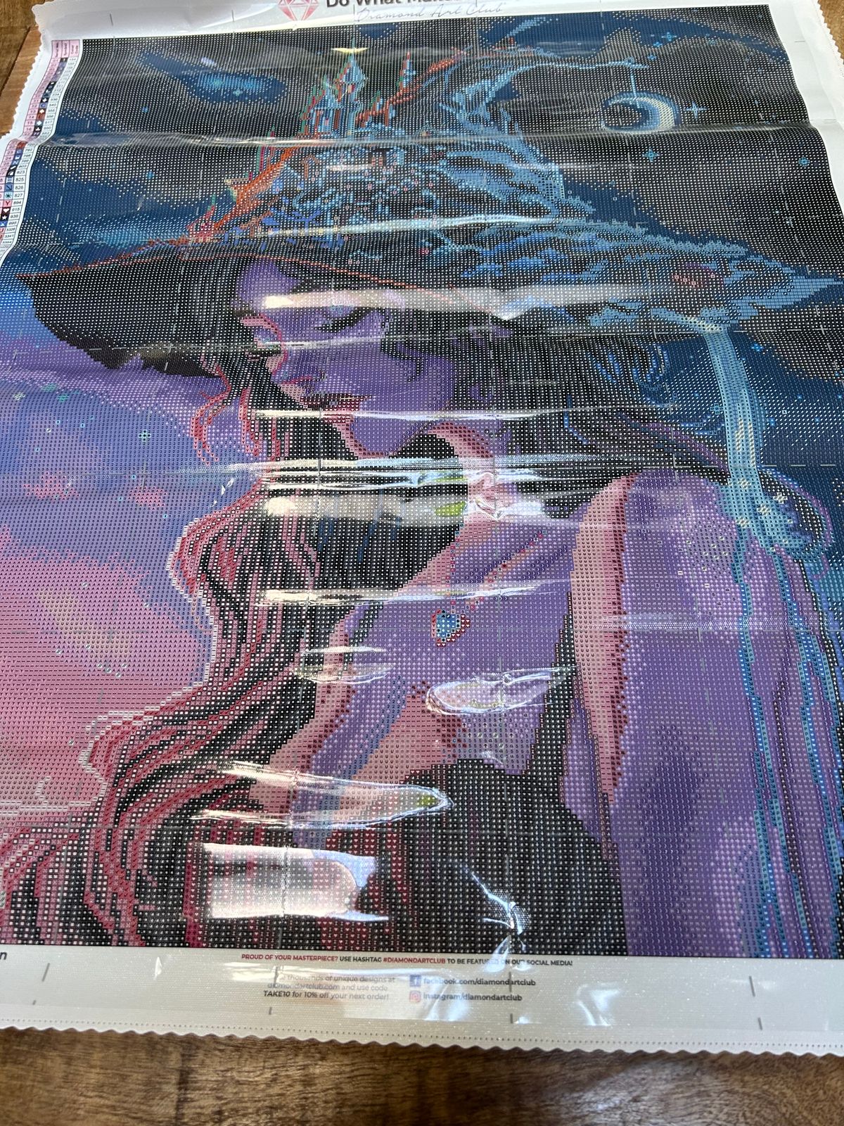 Such a beautiful canvas to do. I love anything about it from the drills colours to the image itself. The only grievance I have is that the grey perforation lines didnt match the perforation at all so the clear cover was useless. However that doesn't take anything from this beautiful kit