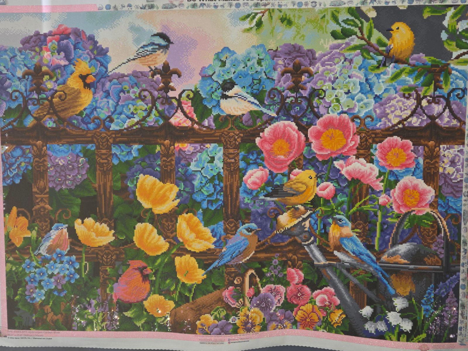 Such a delightful fun painting. Many different flowers and birds to keep me entertained for months.