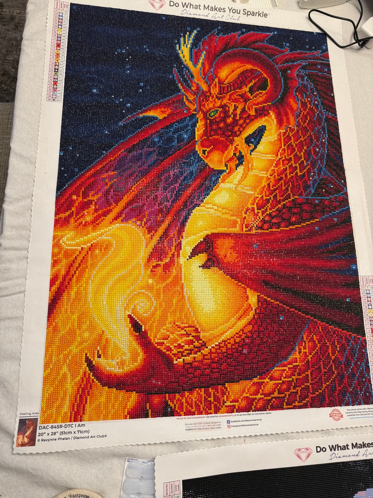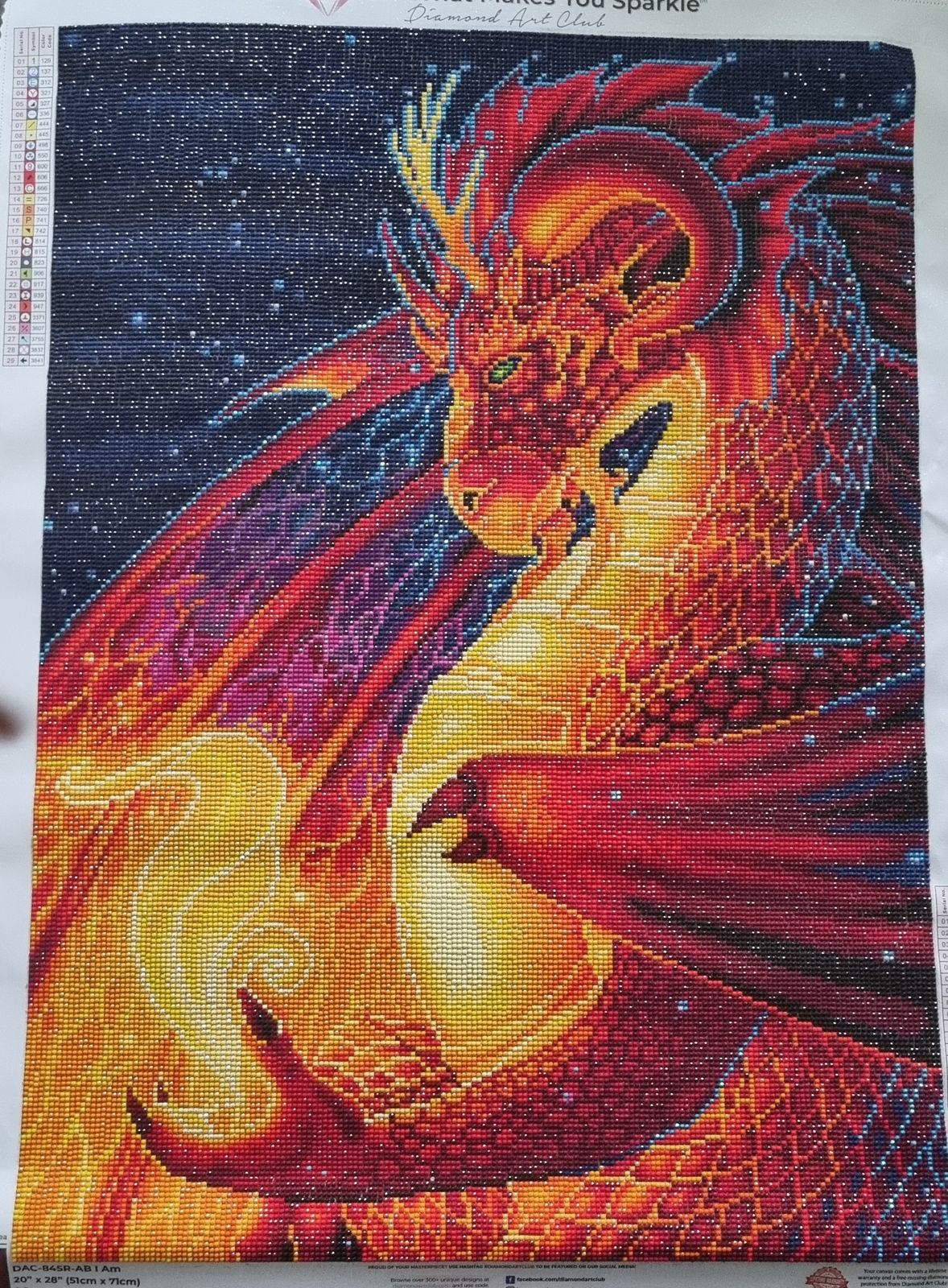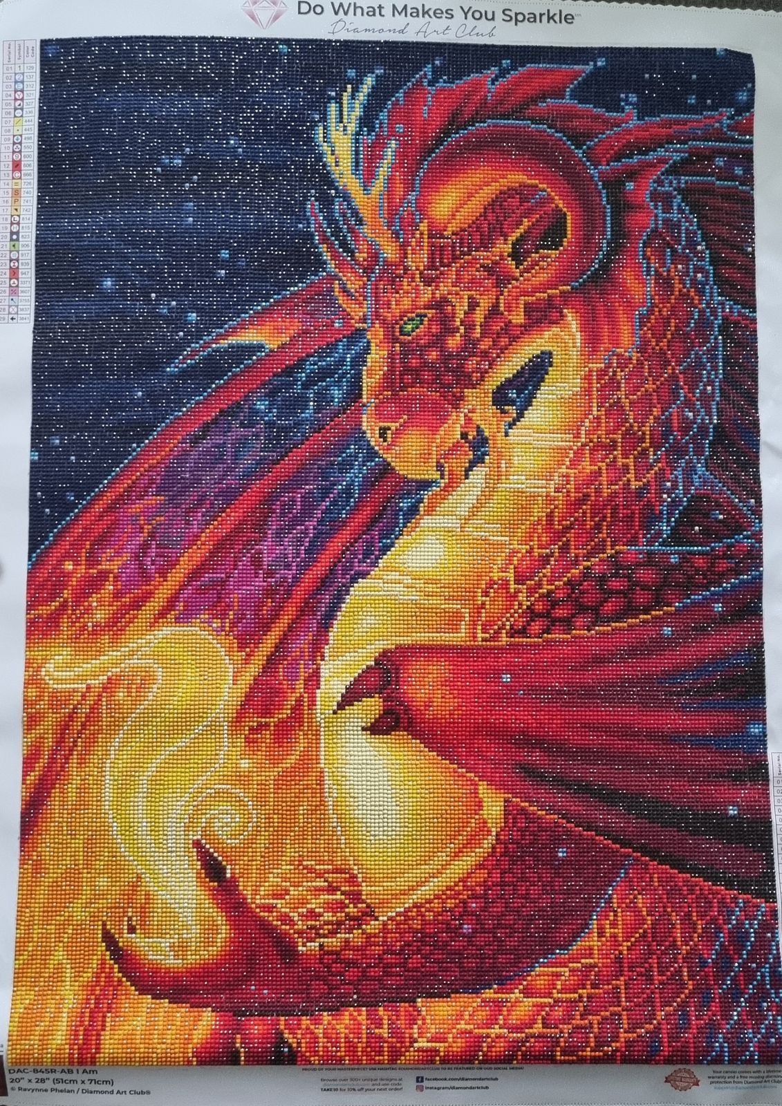 If you're looking for a project that delivers instant gratification and visual drama, this round drill diamond painting from Diamond Art Club is a fiery triumph. The image—a stunning red and orange dragon swirling with flames against a starry night sky—is nothing short of mesmerizing. The color palette pops with rich reds, glowing yellows, and deep blues, creating a magical contrast that keeps your eyes dancing across the canvas.
