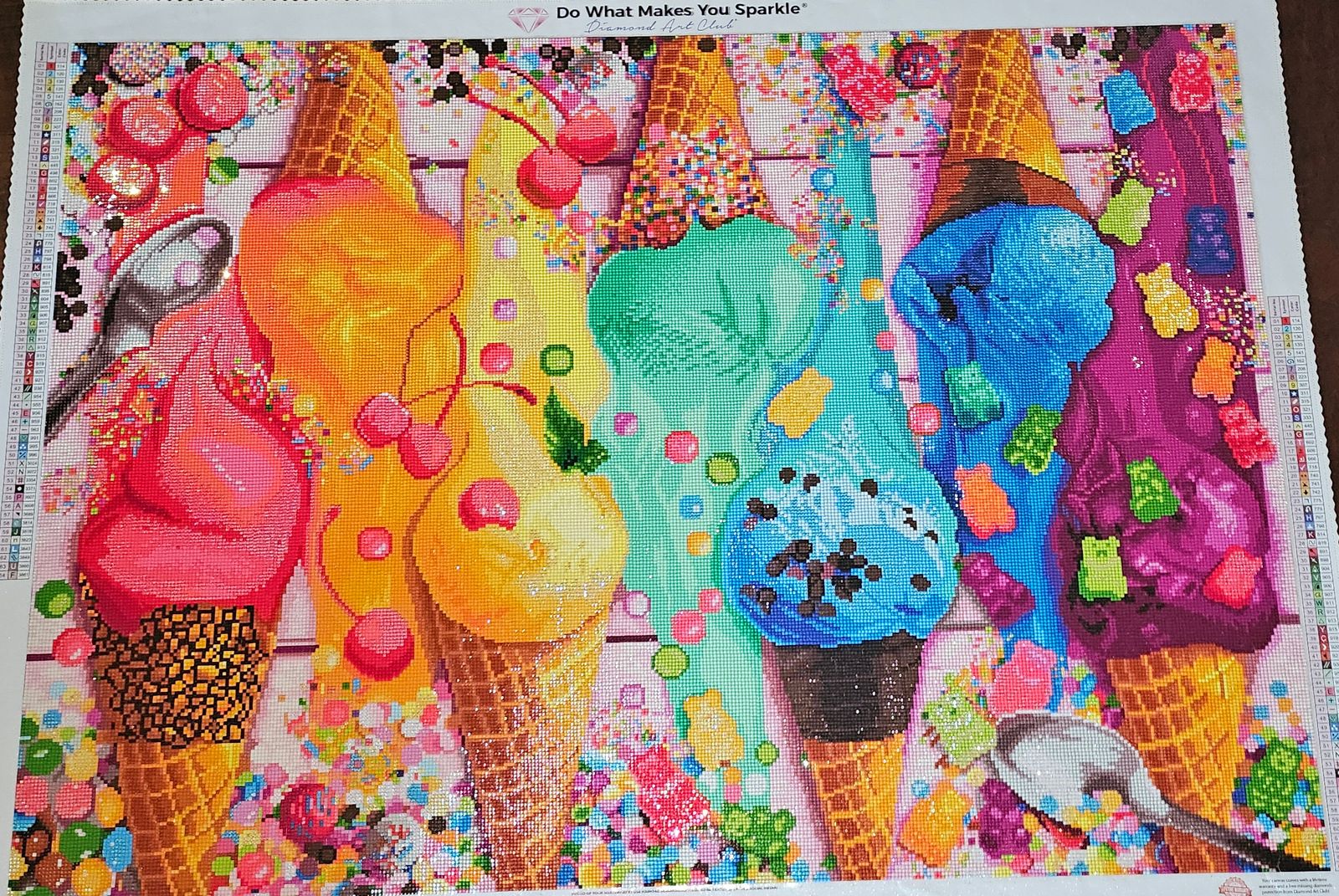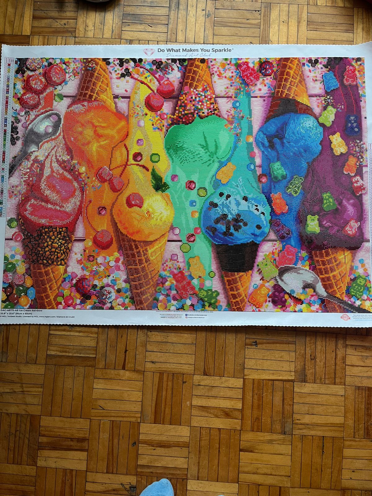 The colors are so vibrate. It’s makes you hungry. Took me a while to get rolling with this one because it’s confetti heavy but a fantastic painting. As always DAC provides the best canvas and diamonds. Another win for DAC.
