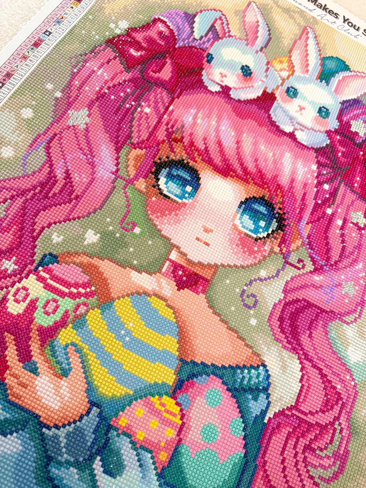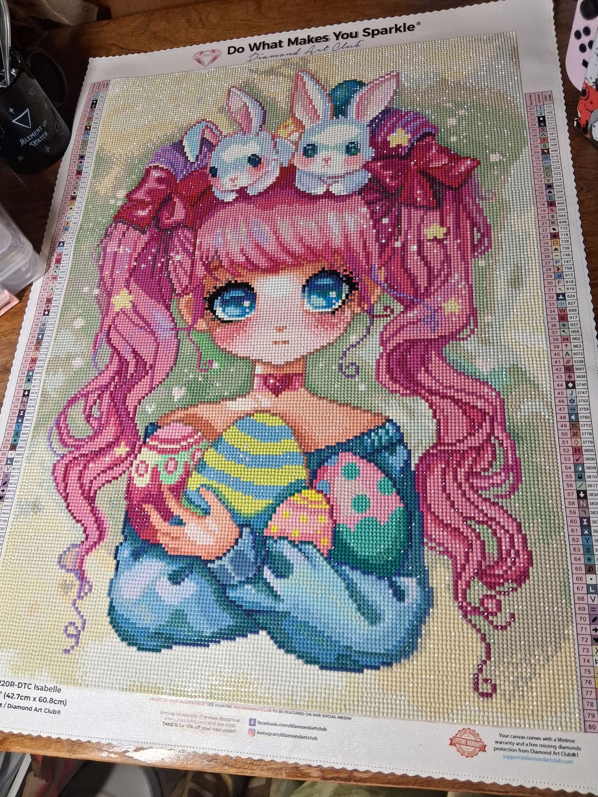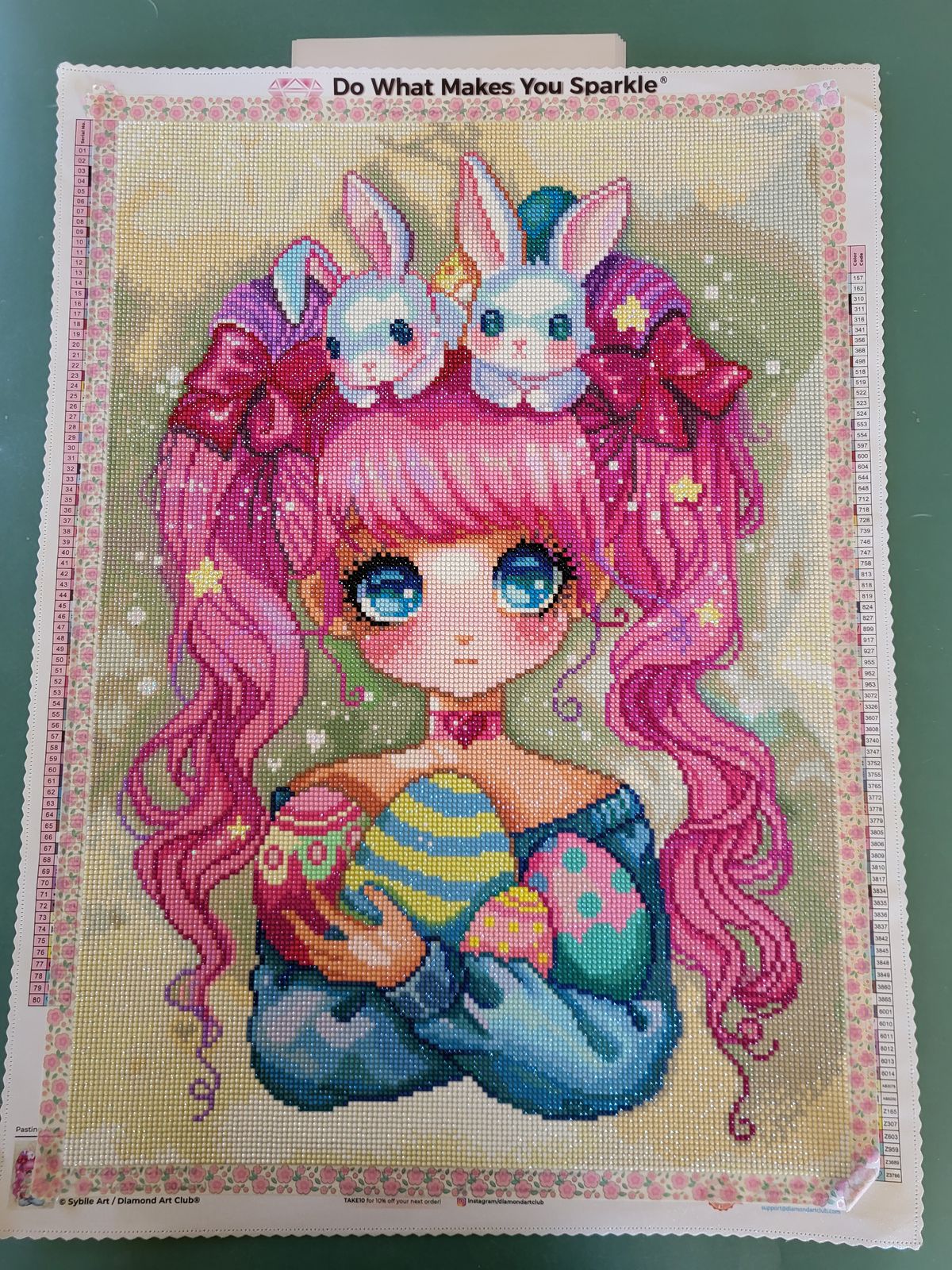 This canvas is just so adorable and the colors are so bright and fun. The drills were great without any trash. The glue was nice and sticky.