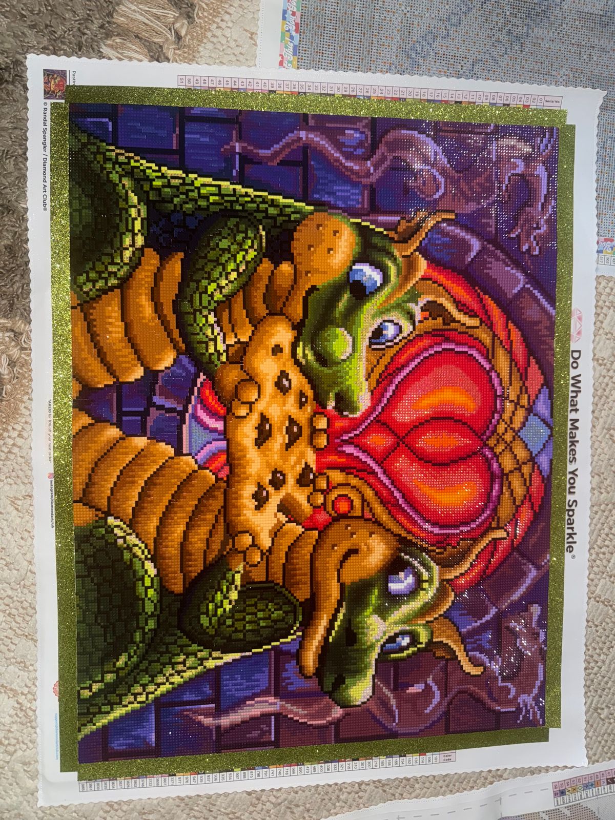 Adorable! This was my first square diamond painting and my first DAC painting, I was impressed. The quality of materials is unmatched - both, the vibrant drills and the sturdy canvas. Square drills aren’t as intimidating as some YouTubers would have you believe. This particular painting has a decent amount of confetti work - it turns out that I prefer that!