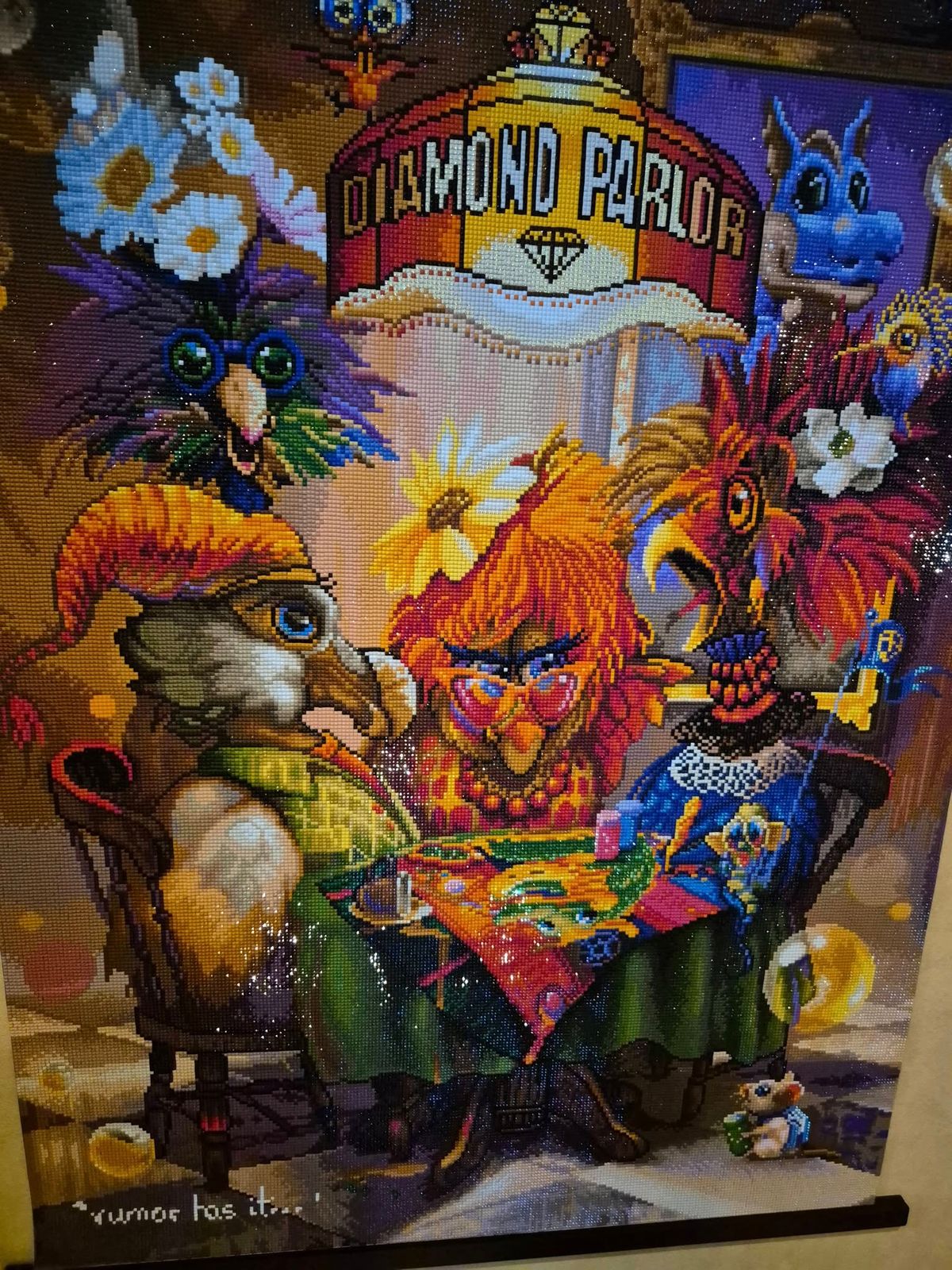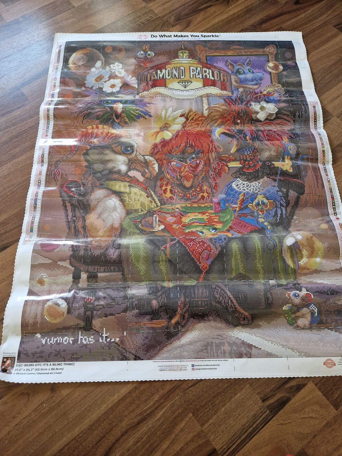 Another amazing piece of art. I really like both artists and had done their kits separately. When I saw this collab, I fell off my couch. The vibrance, details, artistic perspective, etc are all very breathtaking. My significant other doesn't usually pay attention to what I diamond paint but when he walked past and saw this WIP, he stopped and asked to study at it. He was very impressed by the artwork and he felt that the artists created this piece specifically for diamond painting rendering. He commented on the positions of the details and the colors, etc, all seems to be for DP only and wouldn't really be there if it was a normal drawing/painting. This is such a special piece to me! So much fun working on it and lots of colors and confetti.