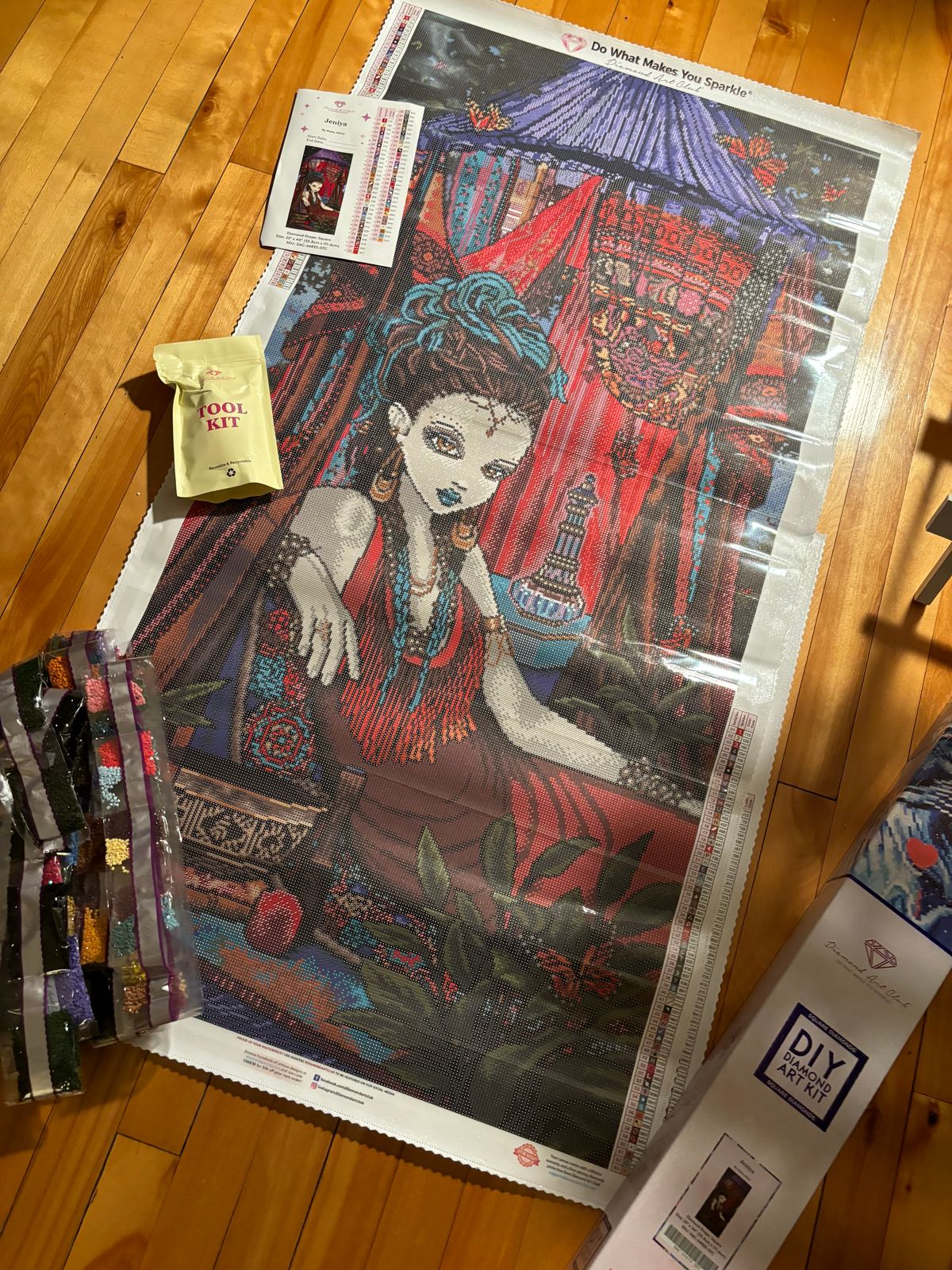 All kitted up for this stunner from Myka Jenina. DAC has delivered again with top quality canvas and superior drills!! The colors in this kit an so dyanamic in their contrast. Cannot wait to get started!