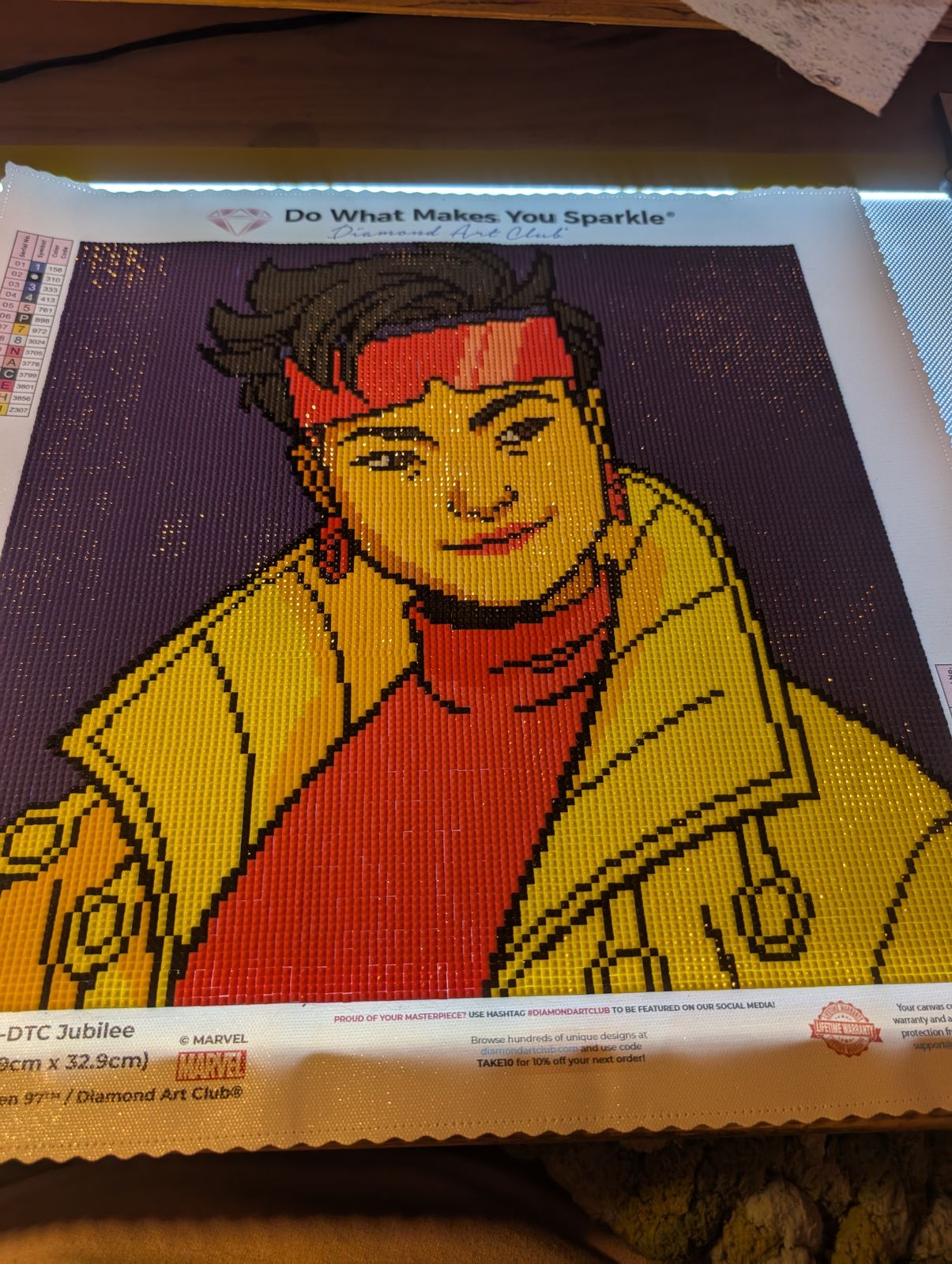 I love the cartoon style of this one - the black outline makes the colors pop. Lots of color blocking, which makes it go pretty quickly.