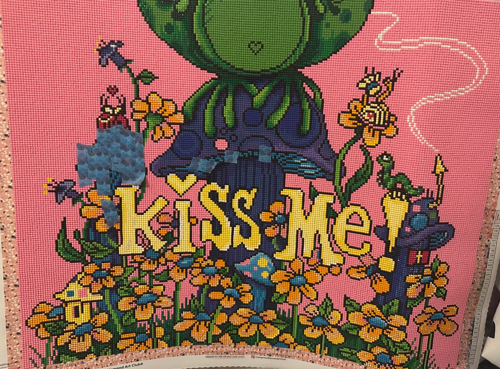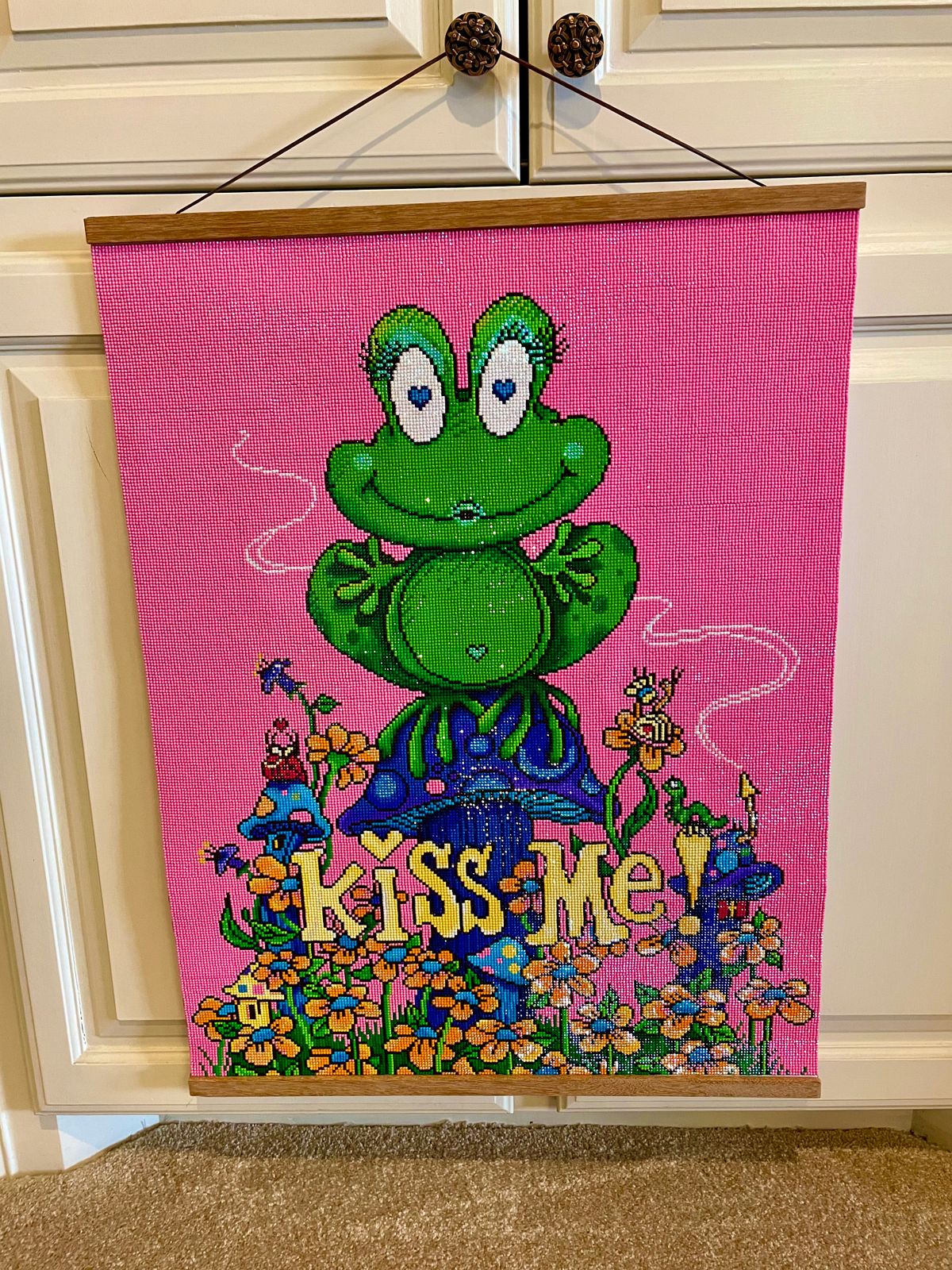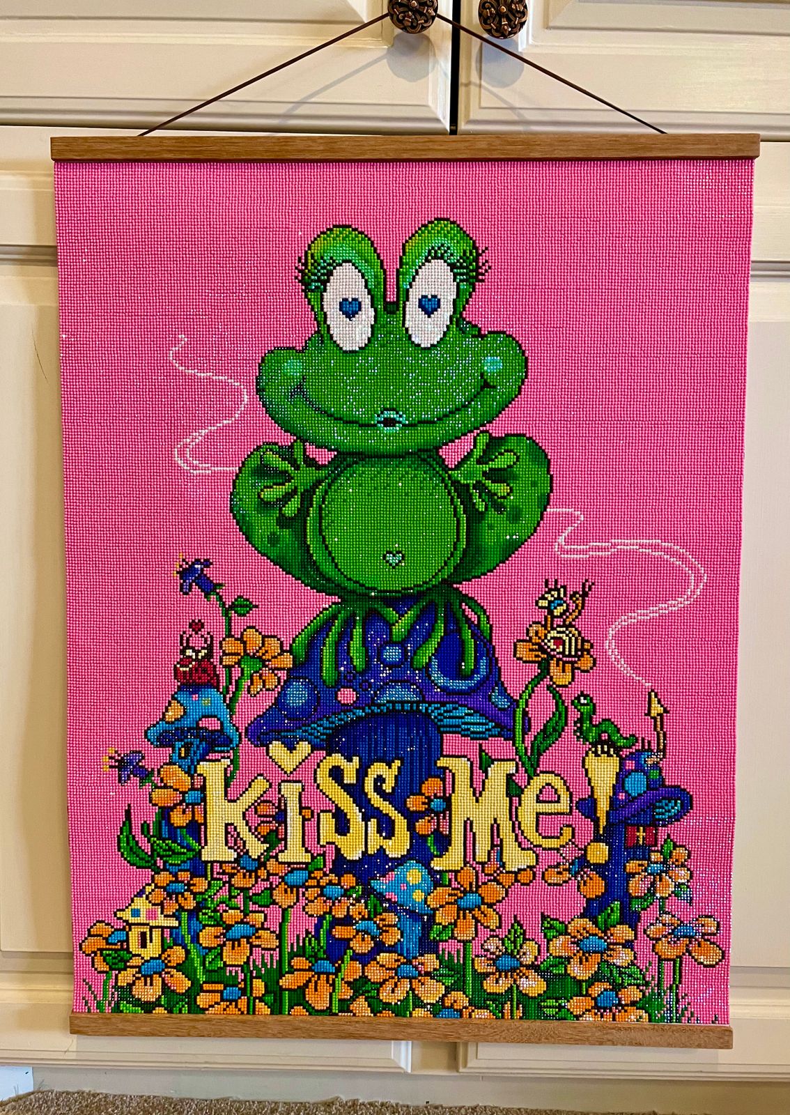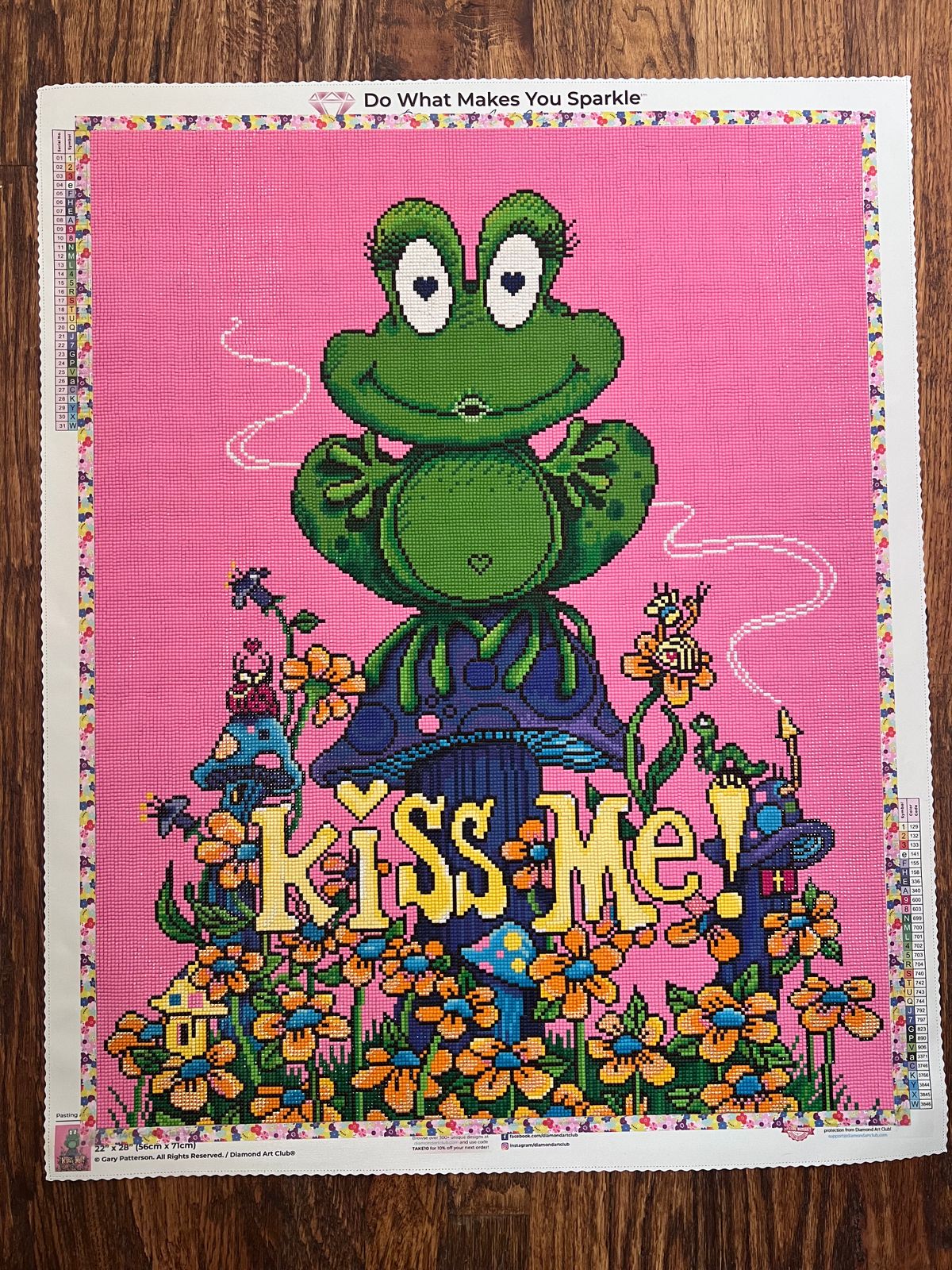 I absolutely loved working on Diamond Art Club's *Kiss Me* canvas! The colors were so bright and cheerful—it made the whole process really fun and relaxing. The retro vibe of the design was just adorable, with that cute little frog chilling among the wildflowers and mushrooms. It felt like I was creating a piece of whimsical art from another era. The details popped so well, and it was such a joy seeing it all come together. If you're into playful, vintage-style artwork, this kit is a must-try!