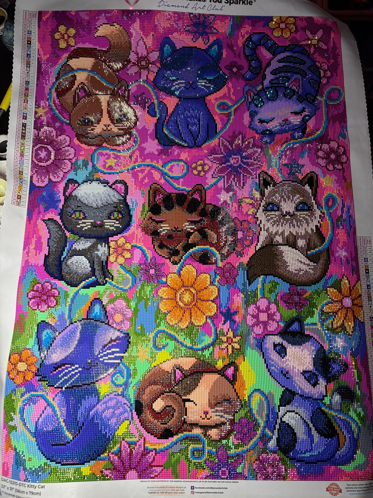 I chose to separate it into 3 sections and work the background first, then the cats. Then the opposite in the second section. For the last, I worked it from right to left and in smaller sections.