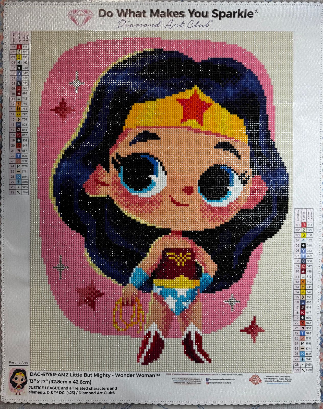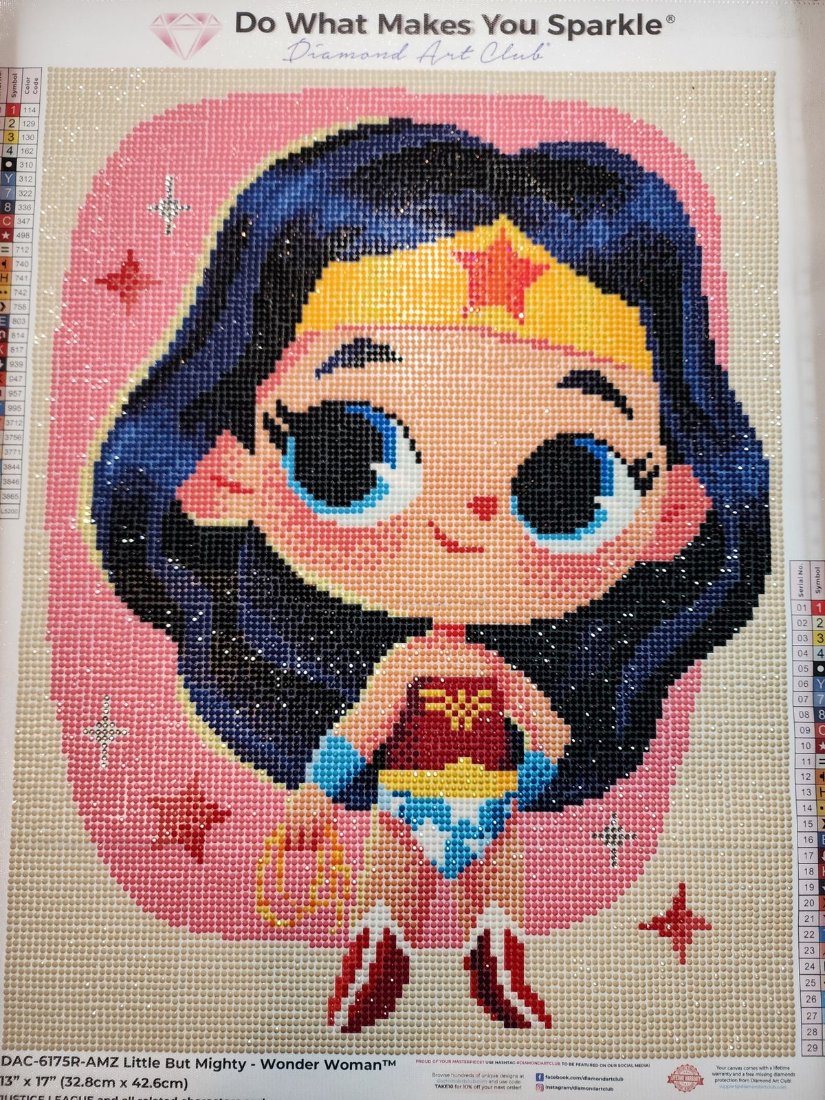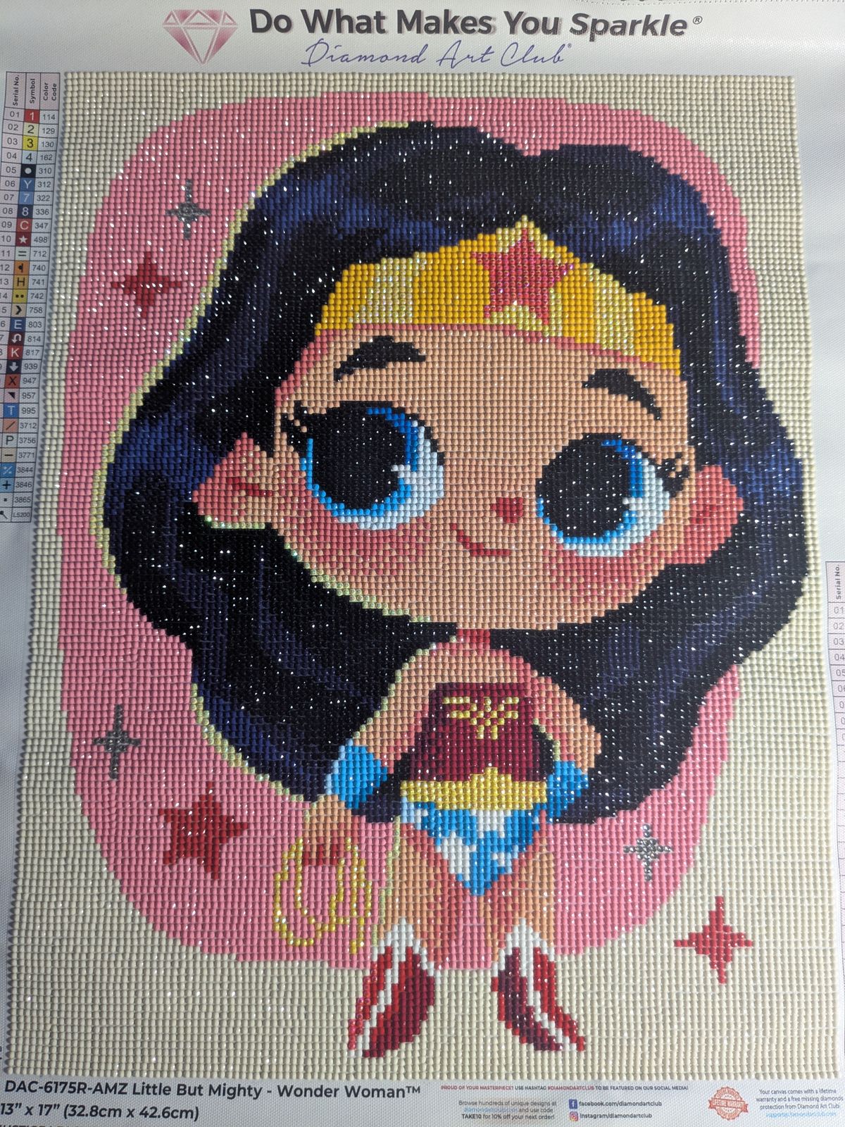 Diamond Painting Little But Mighty - Wonder Woman™-AMZ 13" x 17" (32.8cm x 42.6cm) / Round With 29 Colors Including 3 ABs and 1 Iridescent Diamonds / 17,784