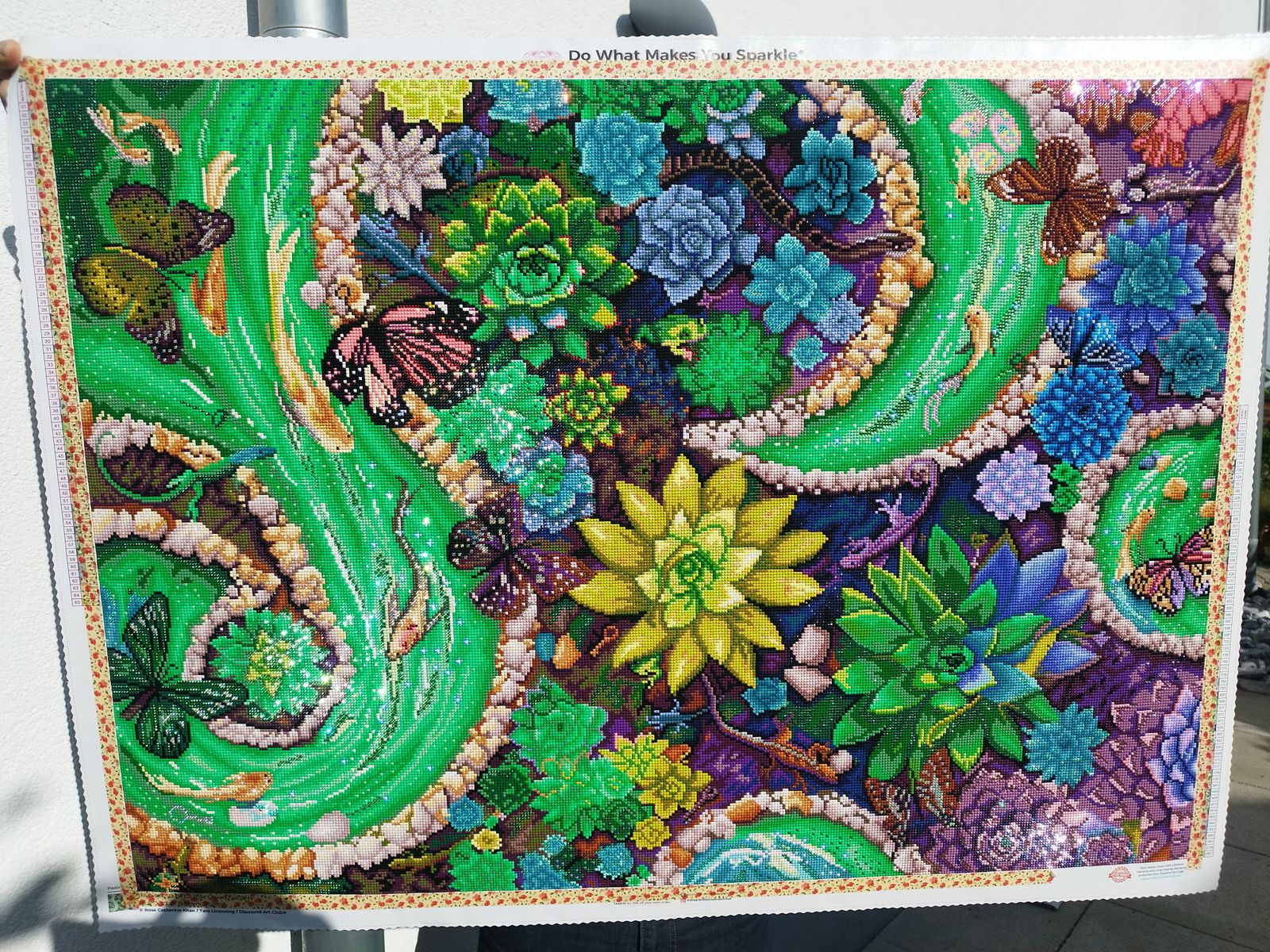 This diamond painting is absolutely stunning! The vibrant mix of succulents, butterflies, and flowing water creates a magical and calming scene. The colors are rich and detailed, and the sparkle from the diamonds adds a beautiful touch of elegance. A truly mesmerizing piece of art that brings nature and fantasy together perfectly.