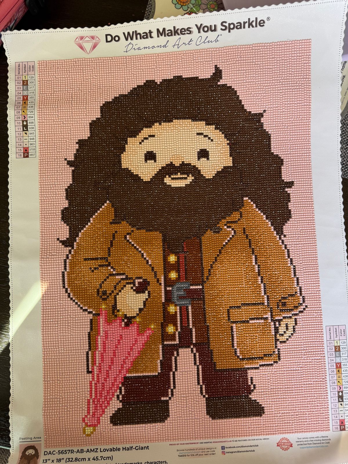 This Harry Potter lovable half giant is perfect. It has been so fun to work on. I love all of the colors and the symbols are all clear and easy to read.