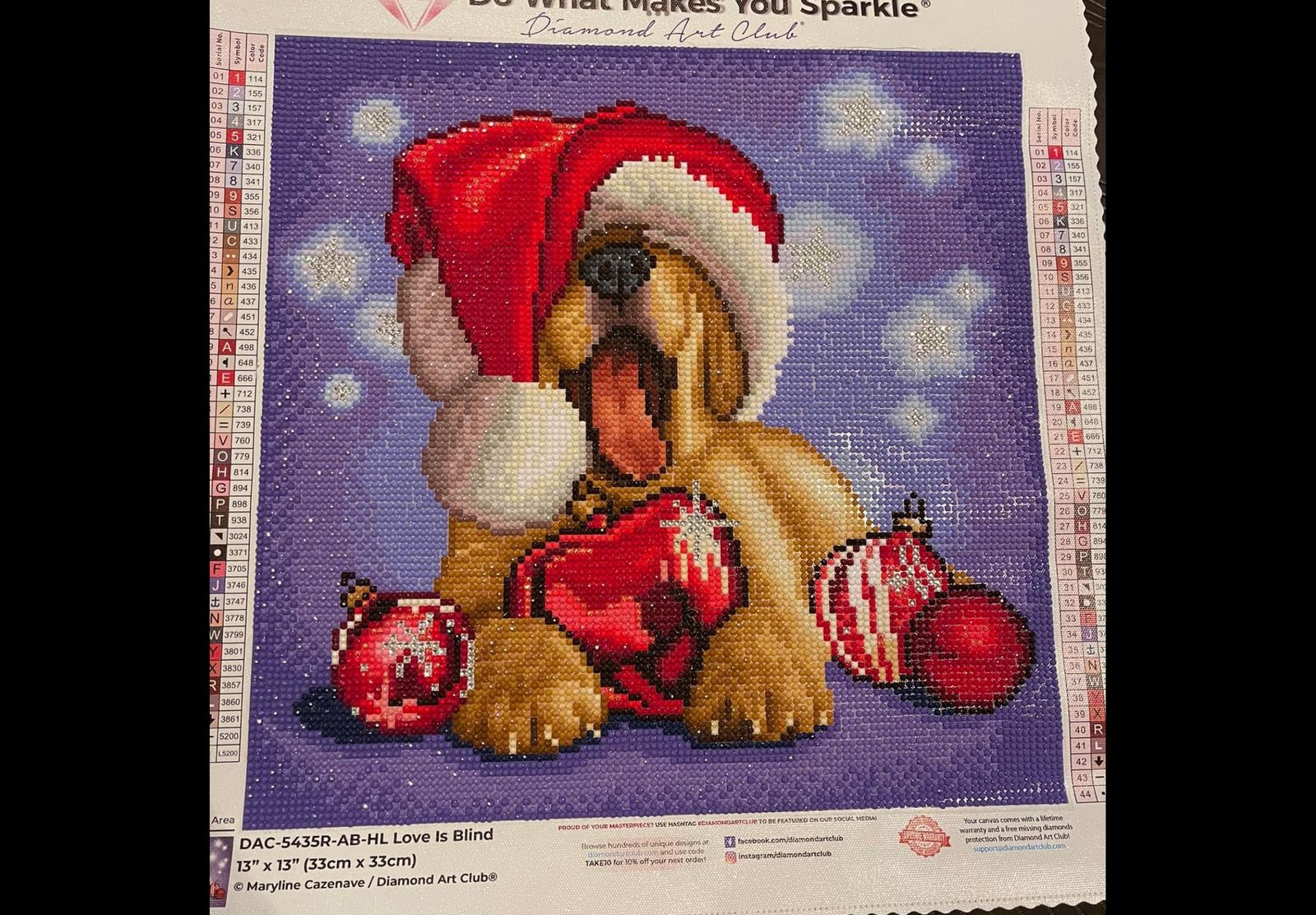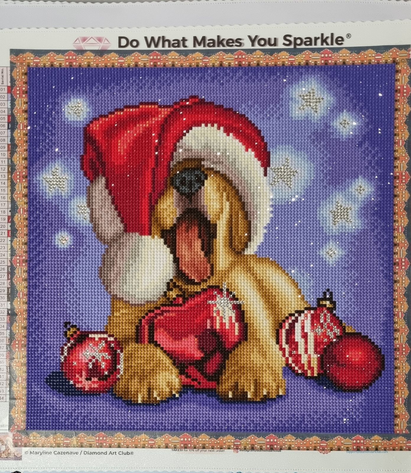 I worked on this over Christmas and it came out so cute! The quality of all the materials was wonderful. The only thing I changed was the tops of the ornaments. I used metallics so that they would match the ornaments on Christmas Tuxedo.