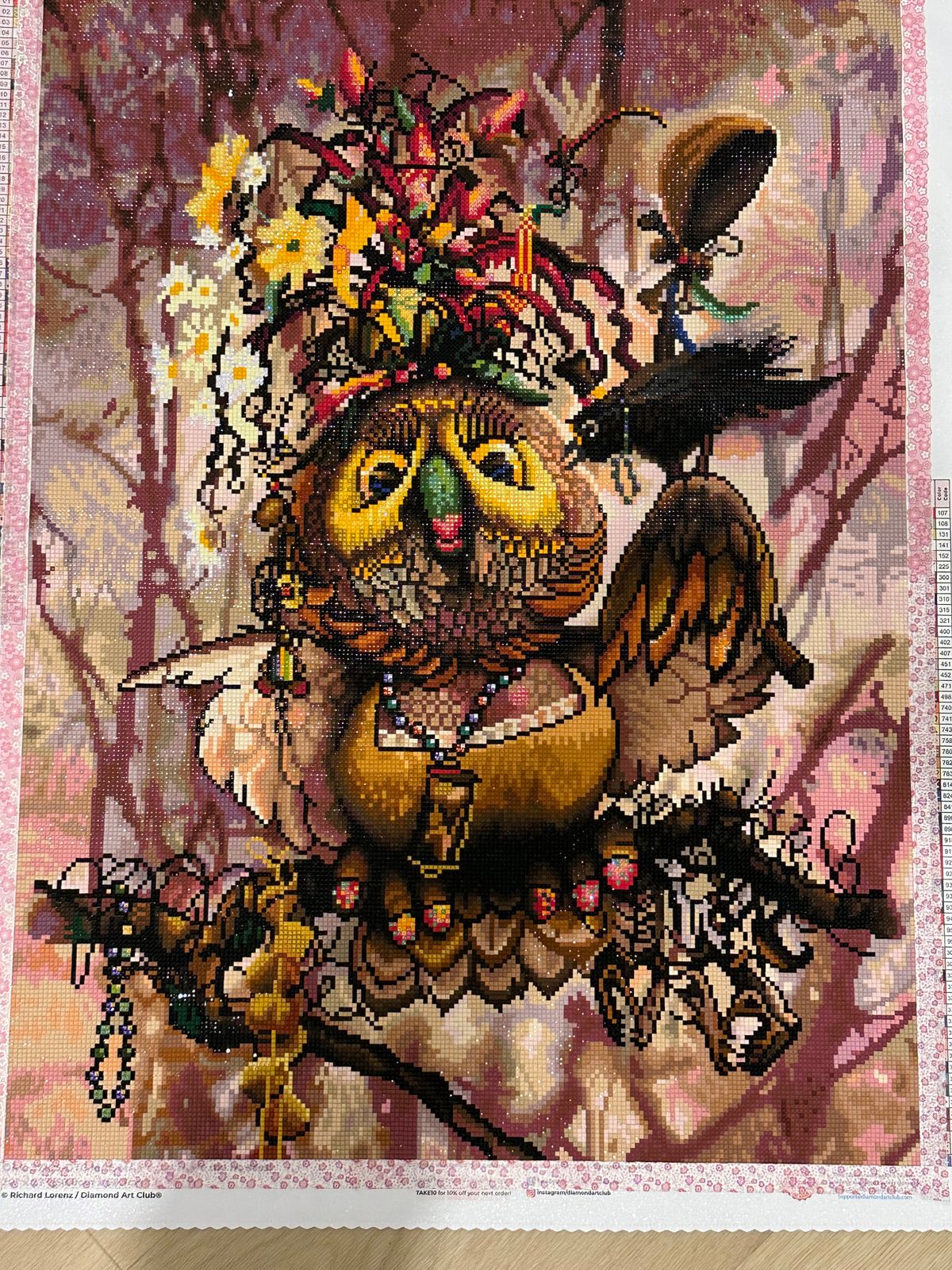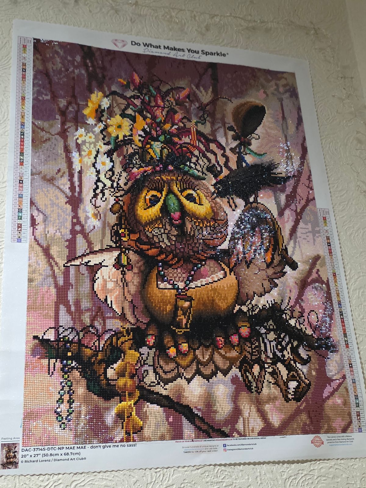 Beautiful busty Mae Mae is one of my fav Lorenz birds. I thought all the brown would drive me nuts, but the canvas is small enough for it to have not been an issue. I added a couple of DAC Fairy Dust drills (yellow and brown) to this as it didn't come with any originally, and it made such a difference.