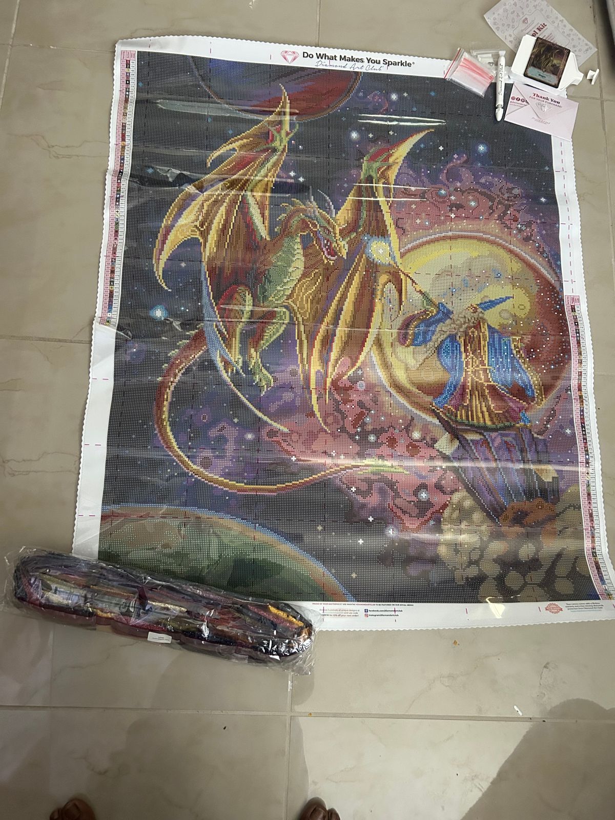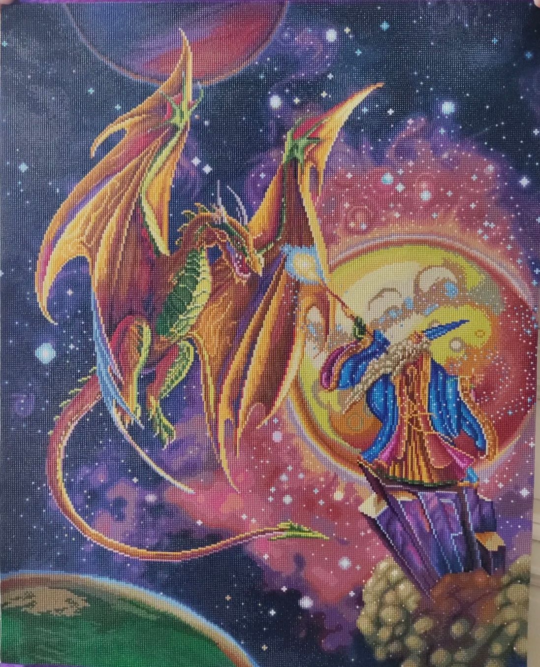 Me encantan sus colores y lo espectacular que es todo, el dragón, los planetas, el mago.....todo😋 precioso.