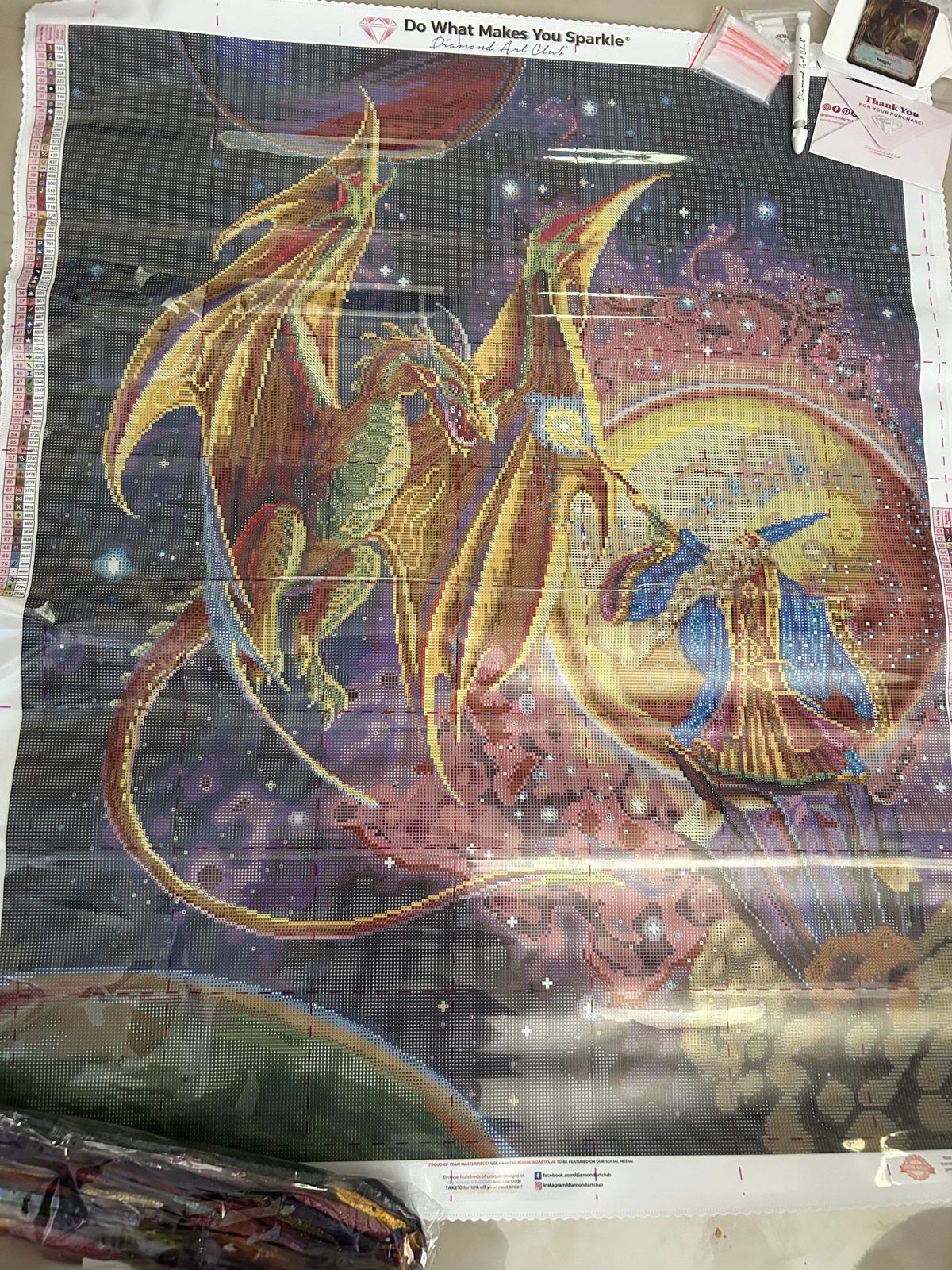 This canvas reminds me of some of the Dungeon and Dragons campaigns that we have played. Love wizards and dragons