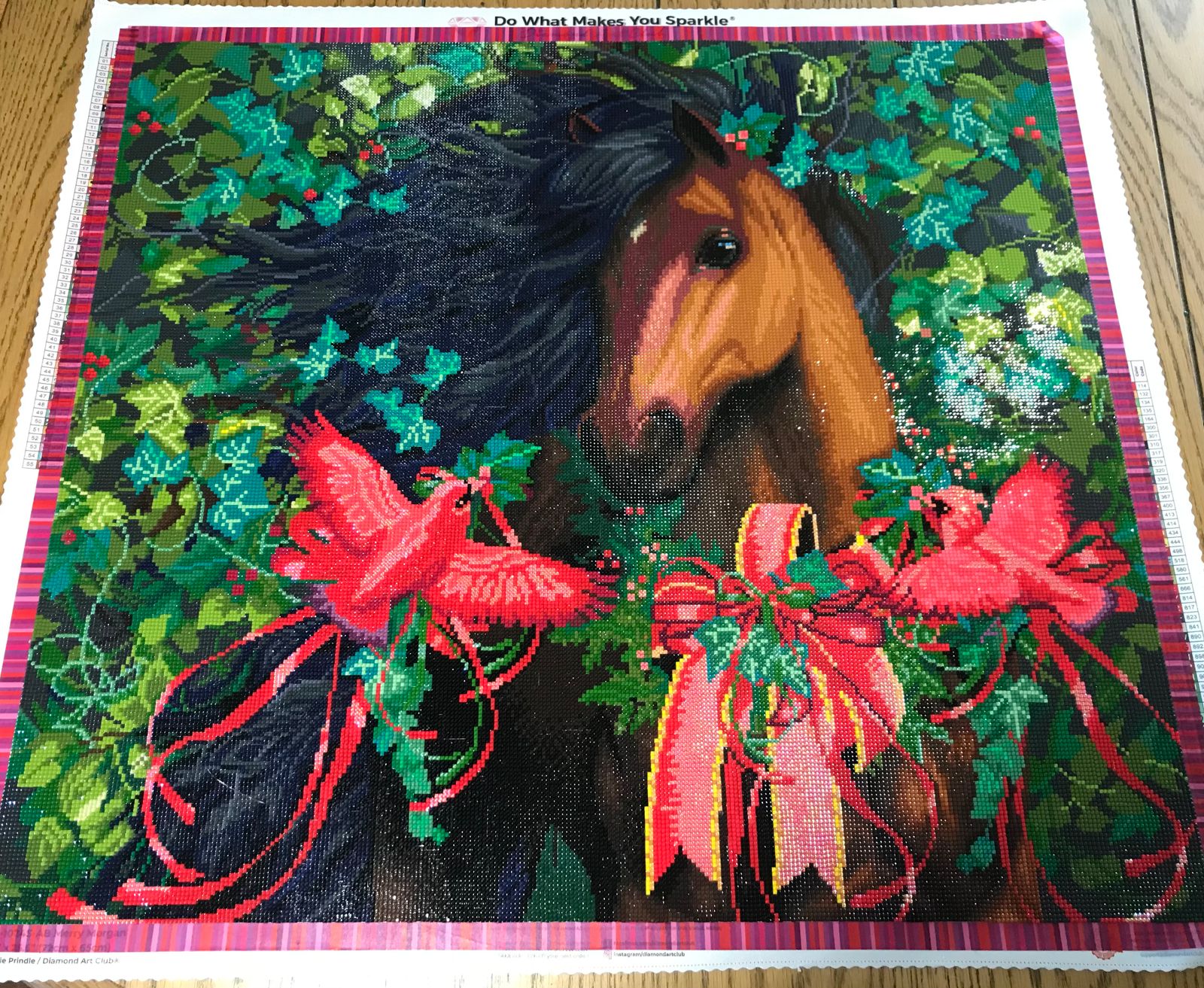 Another fantastic piece of art chosen by Diamond Art Club and rendered to perfection. I love horses and this will be a beautiful piece to display during the holidays! Thank you Diamond Art Club!