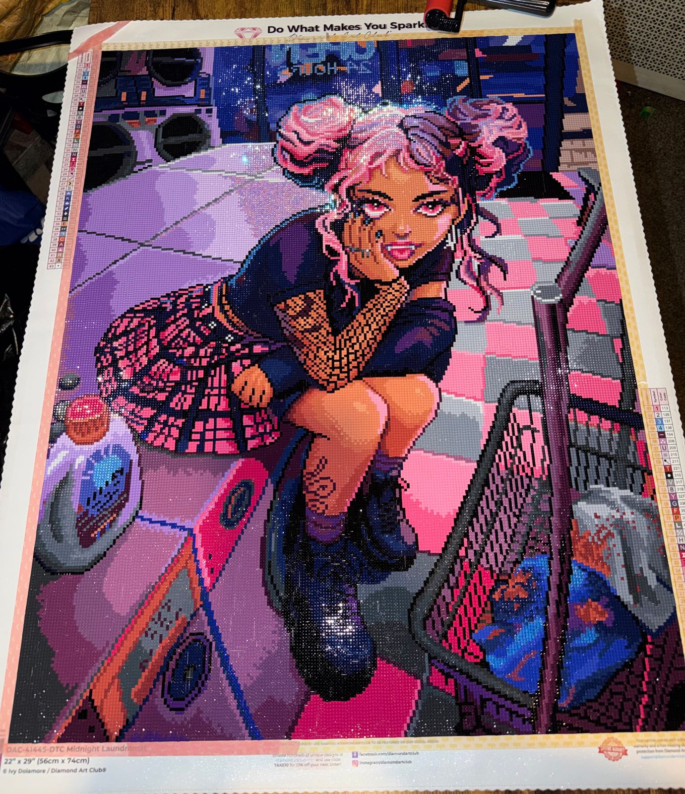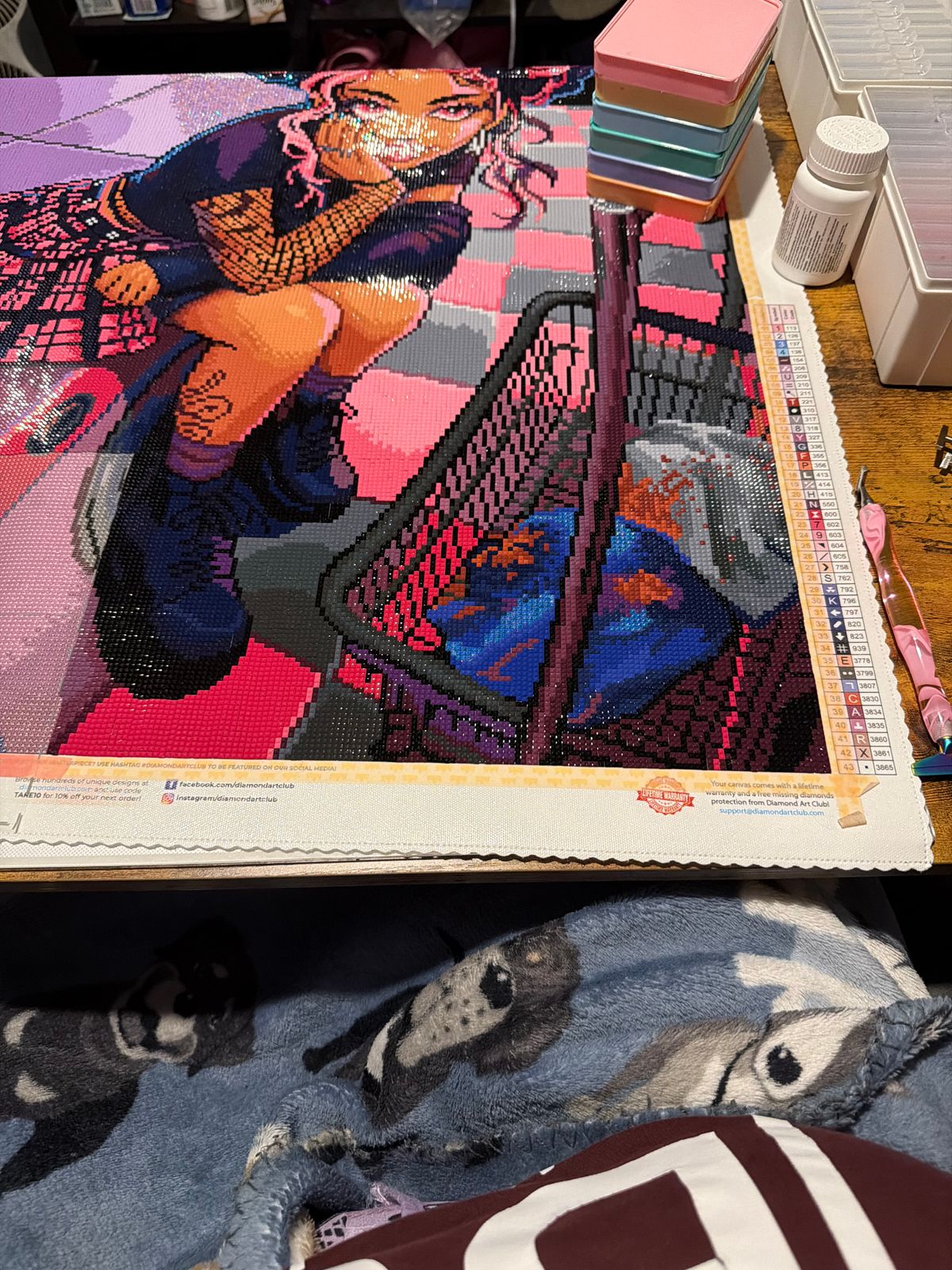 The painting came out beautifully as always, I love the alternative nature of the illustration and loved the fact it had so many AB's even more. All in all, it look me around 67 hours to complete this piece over a number of months, but I am a very casual painter. The only real downside of thid pice would be that the final product is more saturated that the print on the canva. This is more of a fault with the canvas than the illustration and personaly I do prefer the more squatted look, but this is something to note if you would like to get this (Granted I did order mines in 2023 so this may be fixed/less noticeable)