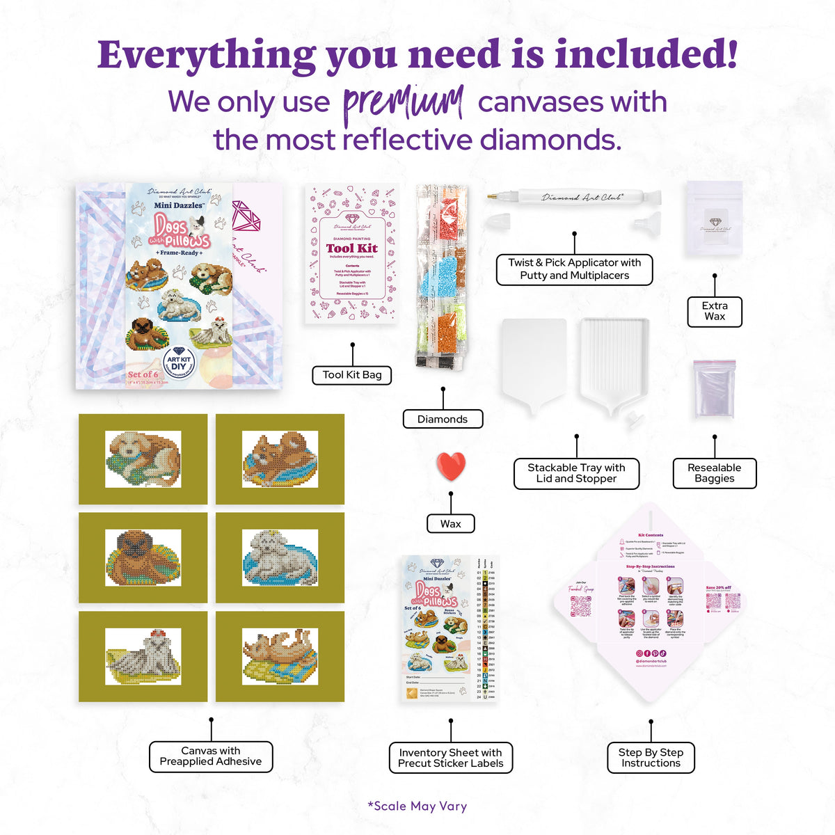 Grab your Mini Dazzles™ - Dogs with Pillows Diamond Art Painting Today!