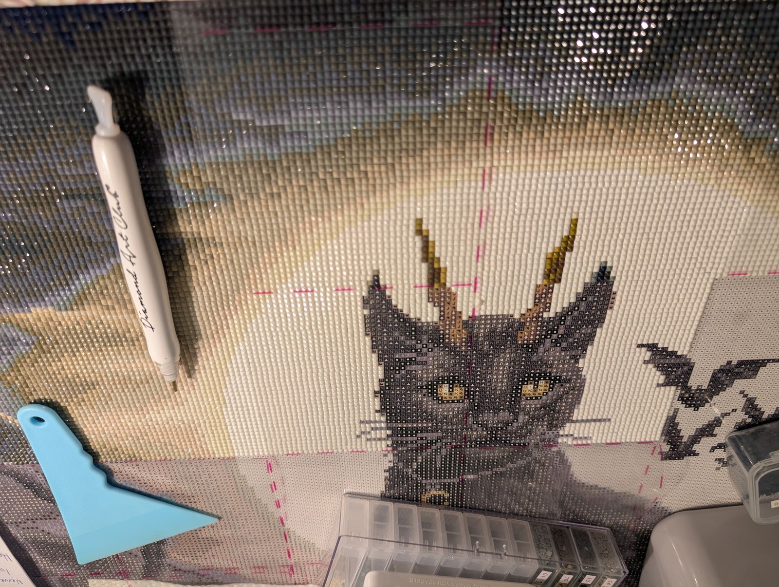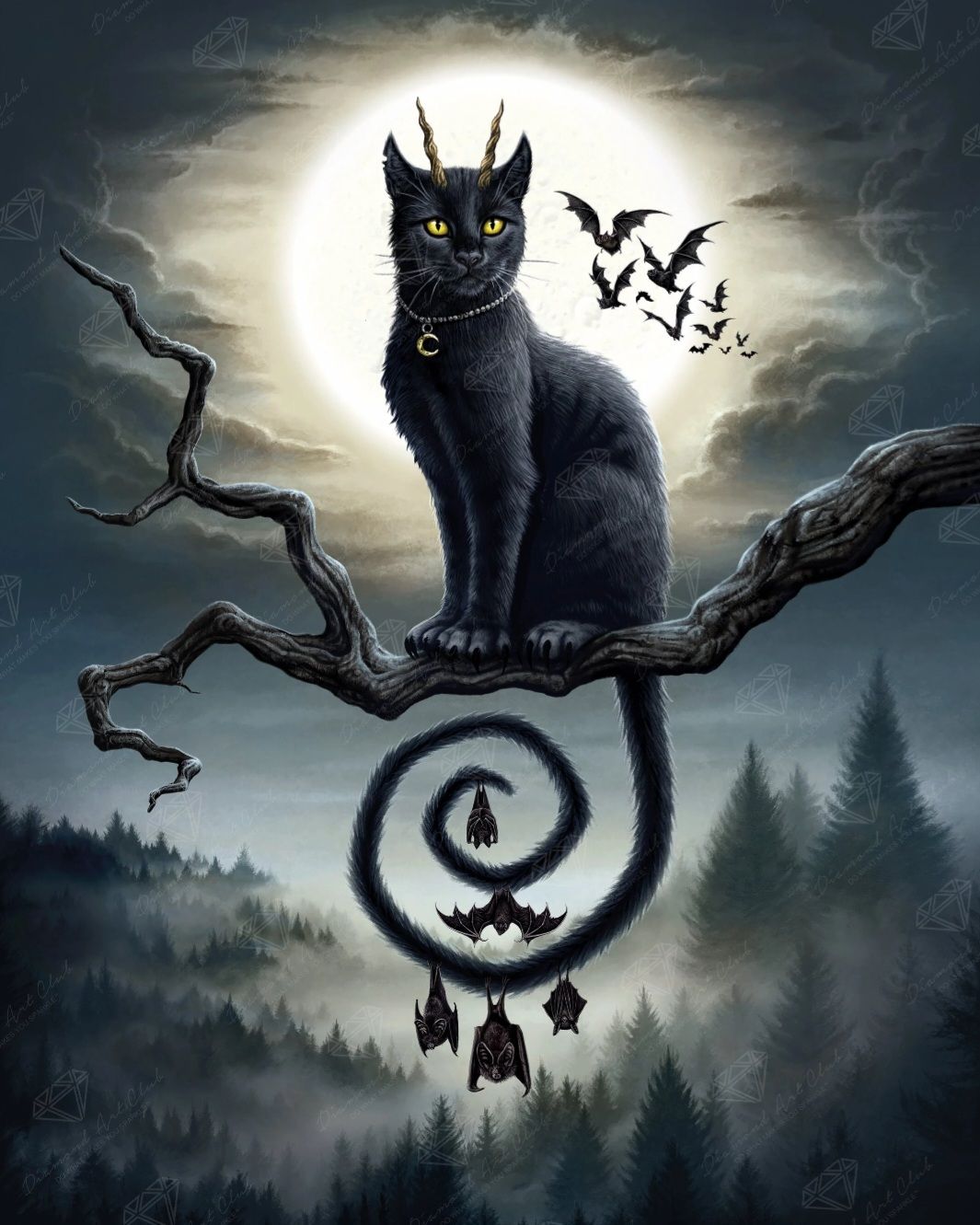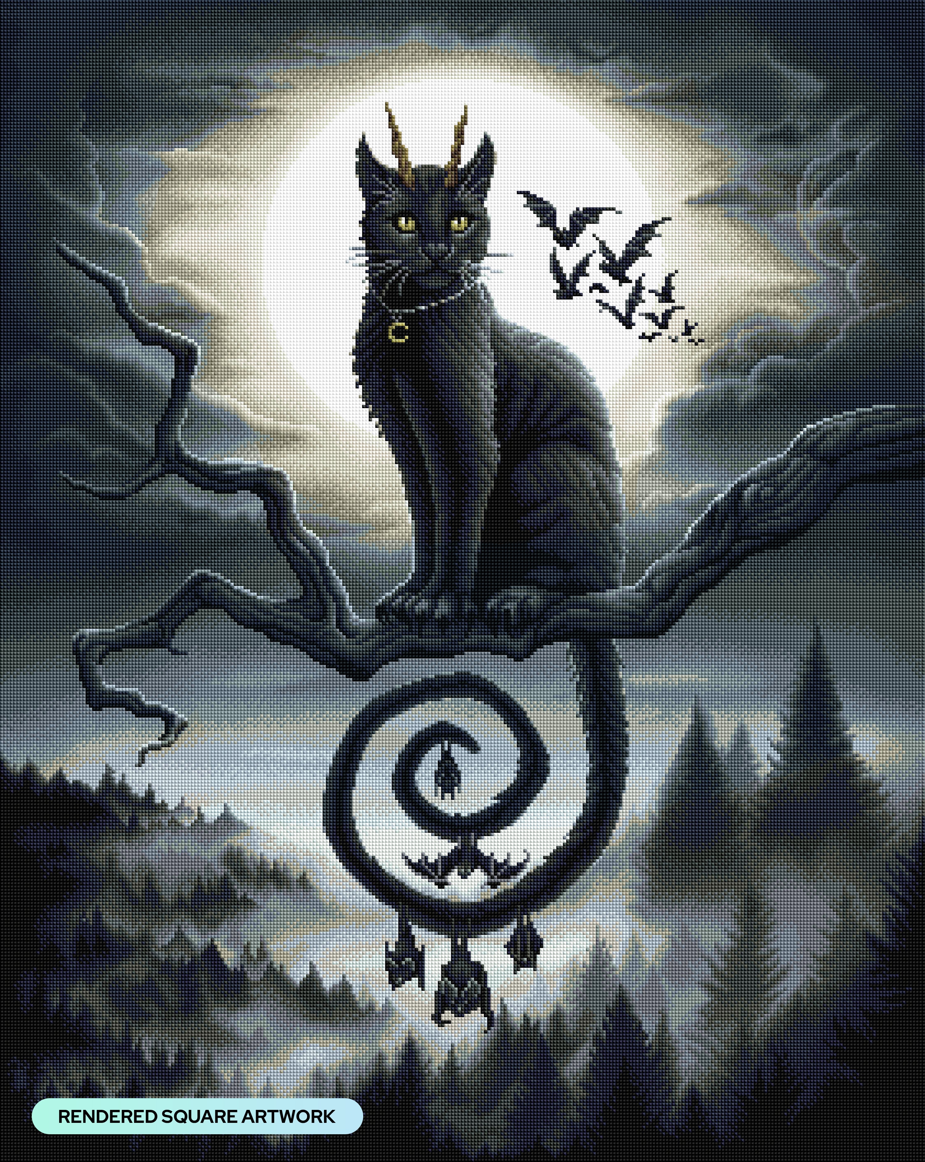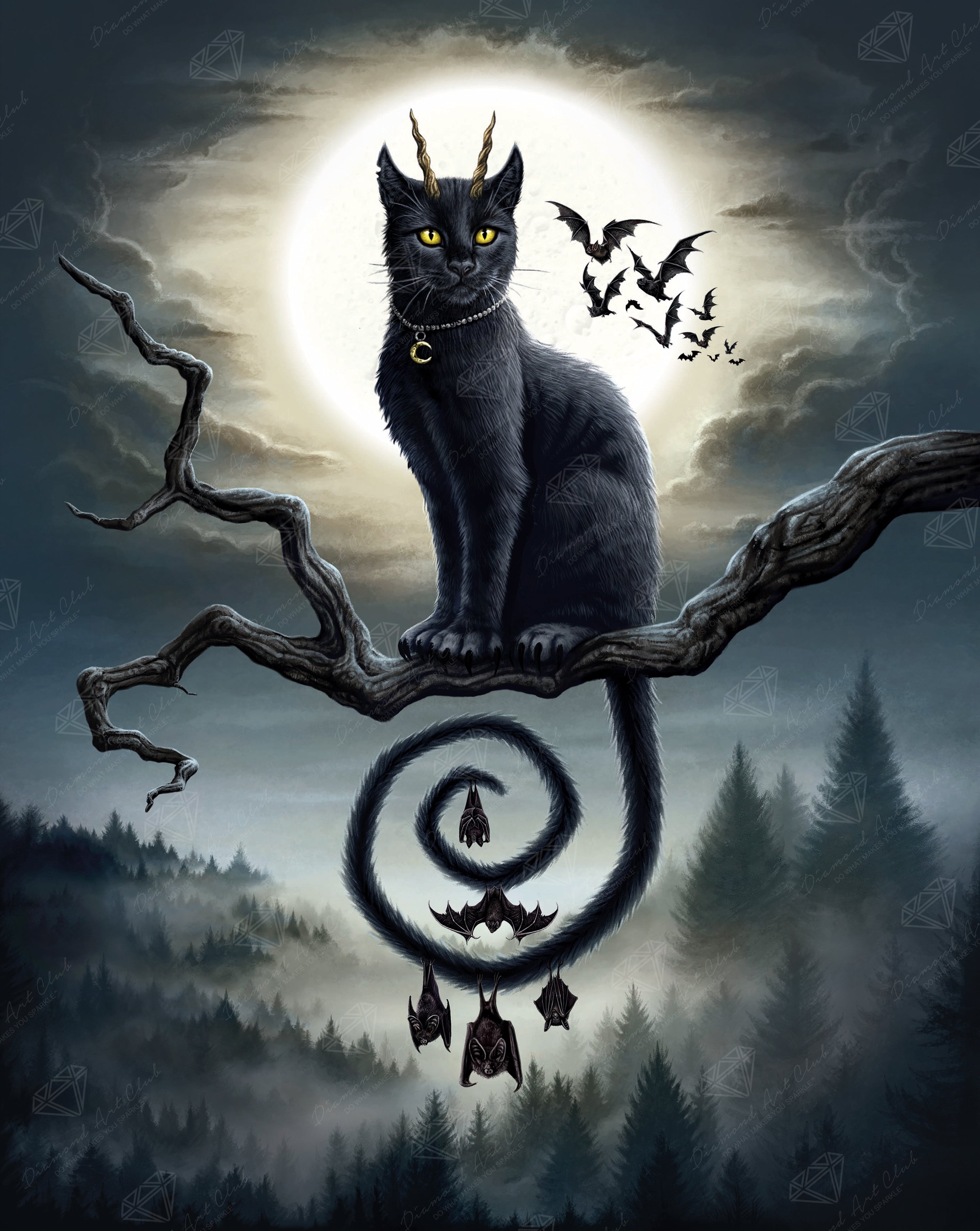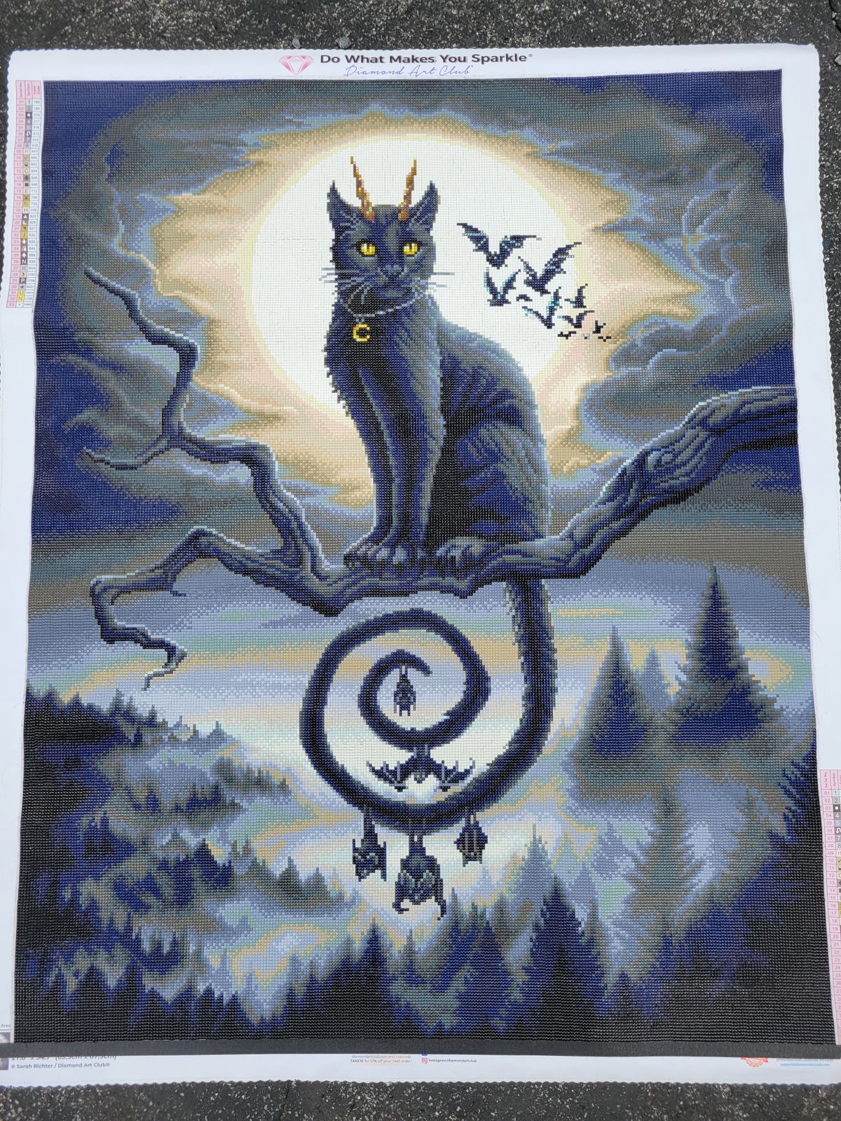 I completed this kit for Drills and Chills 2025 and loved working on it. I added some AB drills to the bats flying in front of the moon and to the cat's horns. Came out beautifully!