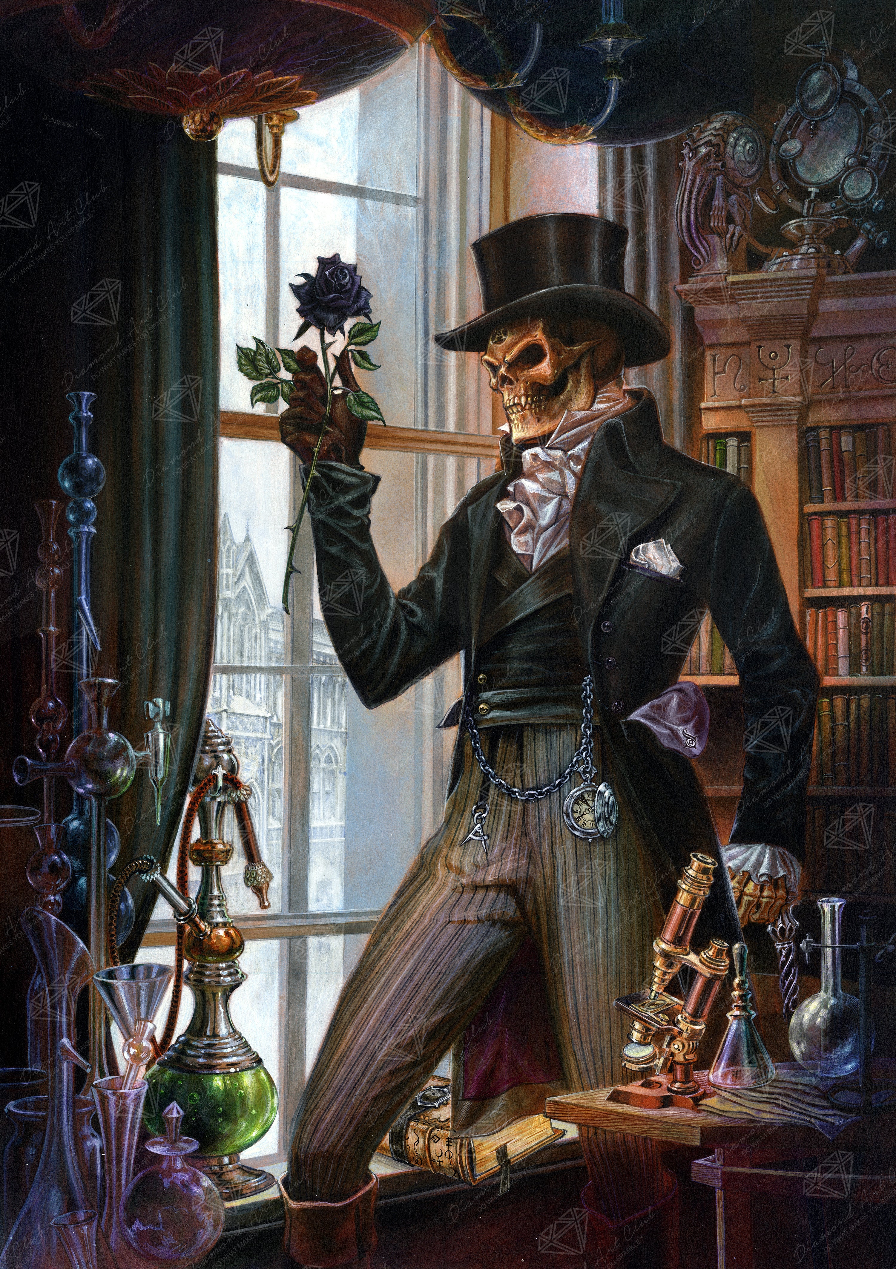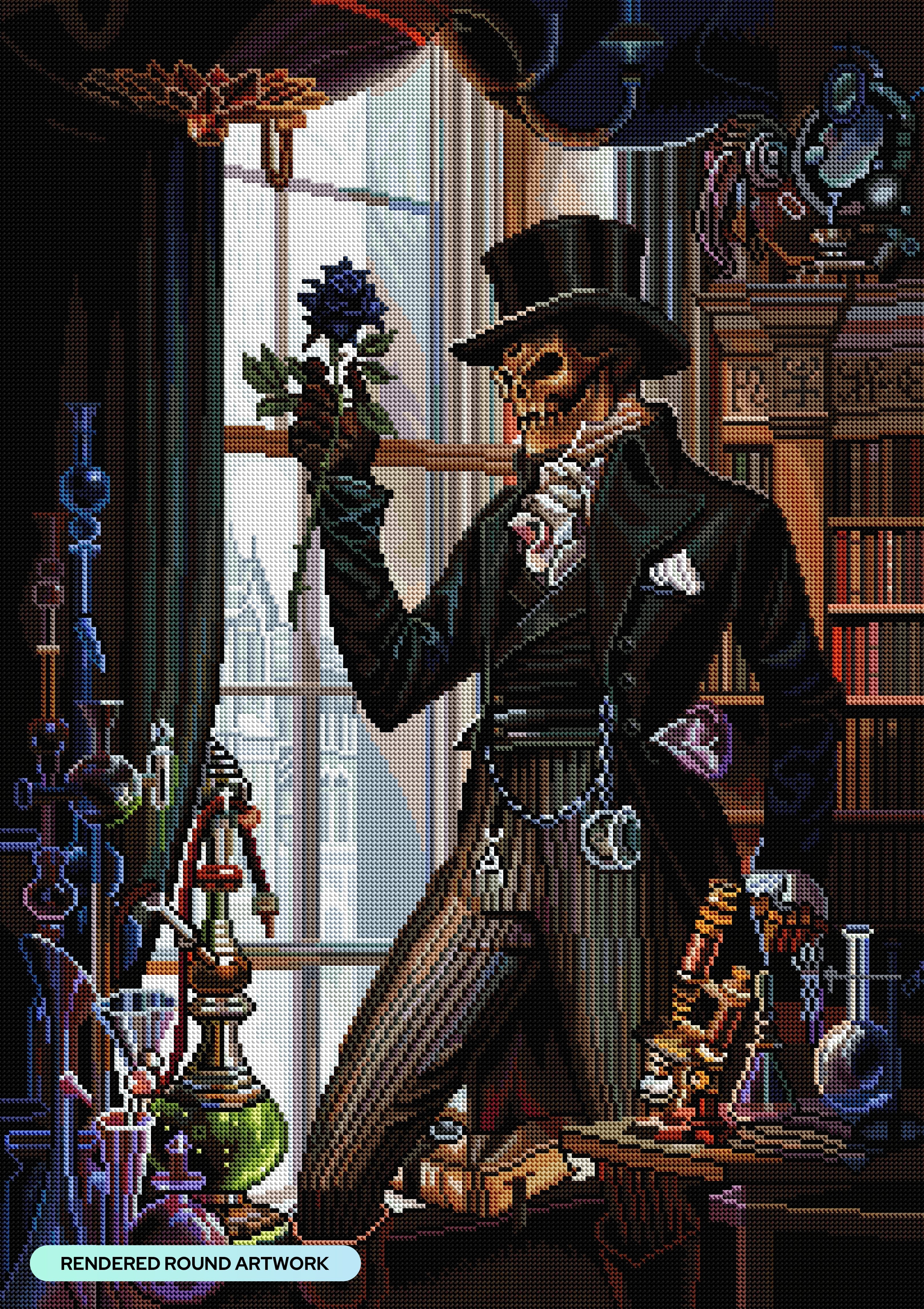 Step into the shadows of the Victorian era, where mystery mingles with alchemy. Embrace the dance between life and death, wrapped in the elegance of a skeletal gentleman.