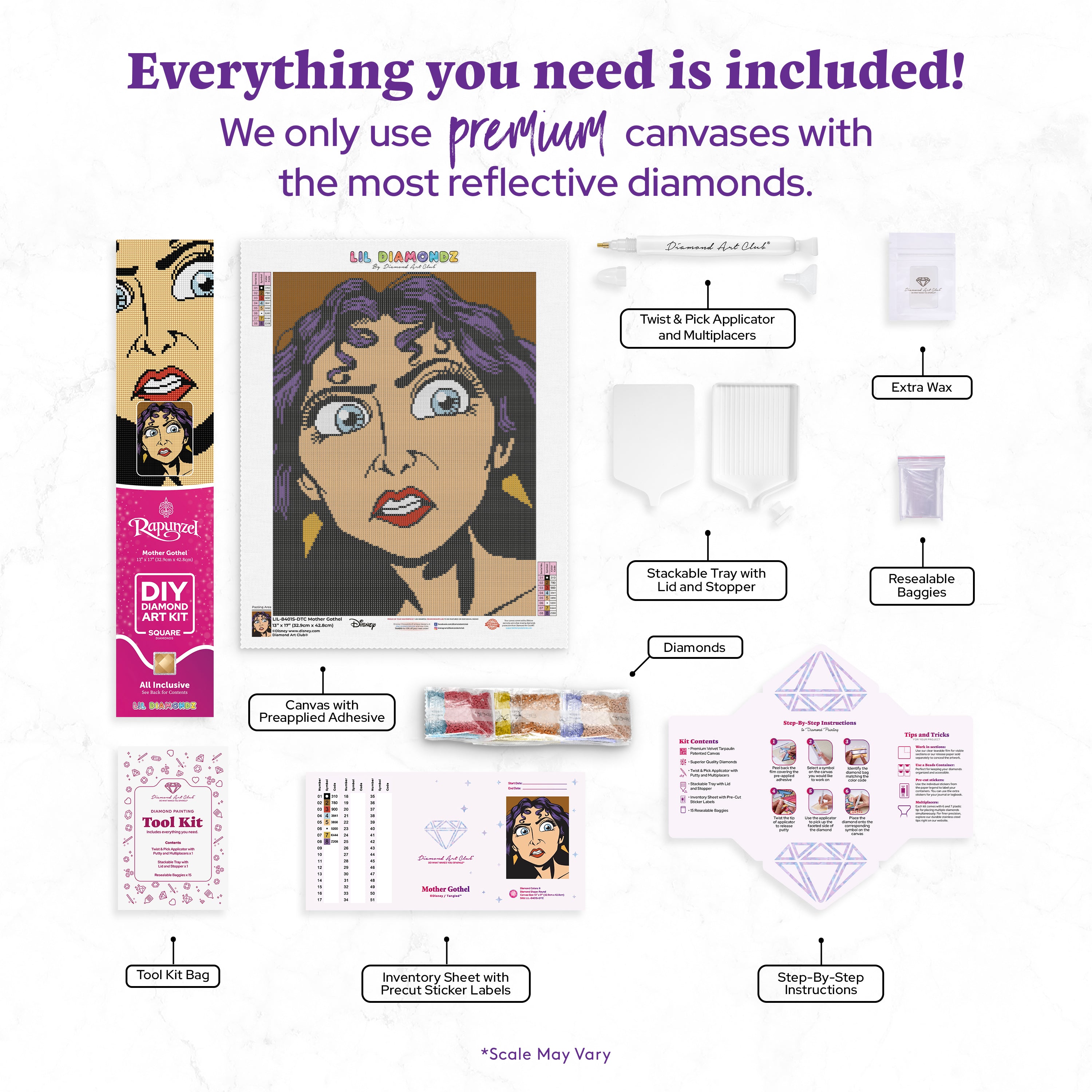Unleash your inner drama with Rapunzel’s cunning keeper. In this striking depiction of timeless intensity, bold colors and expressive details bring her scheming blue eyes up close and personal.