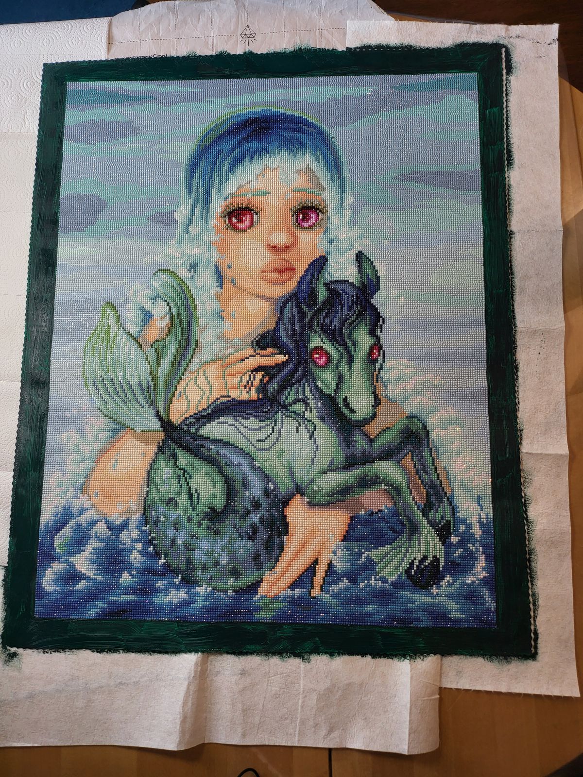 Die Steine waren heftig statisch aufgeladen und sind mir aus den Döschen wie Flöhe entgegen gehüpft. Upkitten war sehr mühsam. Das Bild lag aber auch 1 Jahr im Regal ehe ich dran gegangen bin. Ob das etwas damit zu tun hat, weiß ich nicht :0}