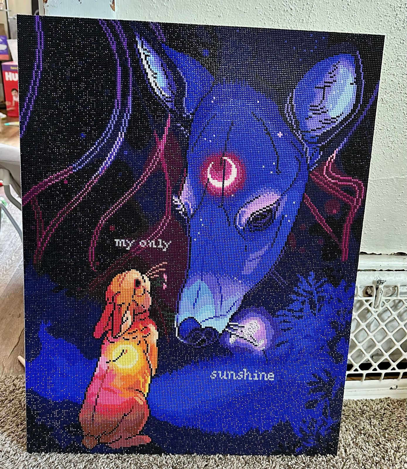 I had this one finished in roughly two weeks and I love it! The colours are beautiful. I did this one to go in my daughters room, and can’t wait to be able to get “You Are My Sunshine” to hang beside this one!