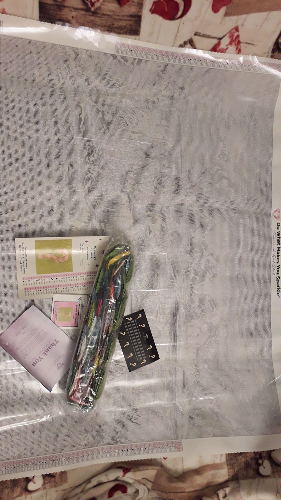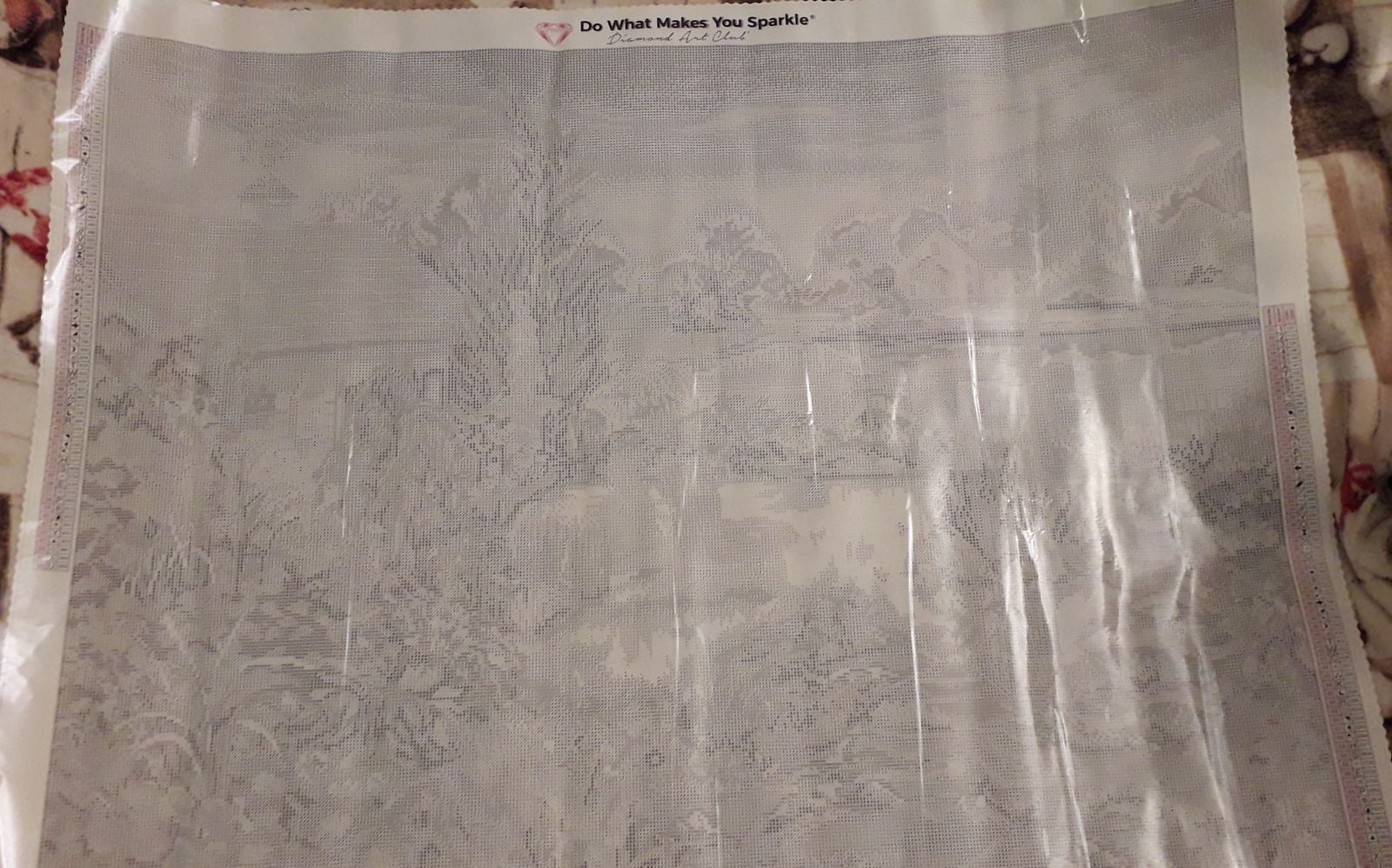 Well as the title states it is a mystery so I cannot reveal the beautiful colors that are in the paintings or what it looks like when finished. DAC always give us such beautiful diamond paintings and the mystery kit is no exception. The drills have very little trash and sparkle just like diamonds. The poured glue holds the drills securely when it cures. The only difference about a mystery painting is the painting has no color, it has black symbols and a white background. It only takes a few minutes to adjust yourself and be able to confidently complete the painting. One of the nicest things about DAC's mystery kits is how wonderful to see the color and picture slowly appear as you diamond paint. You will not be disappointed with this diamond painting.
