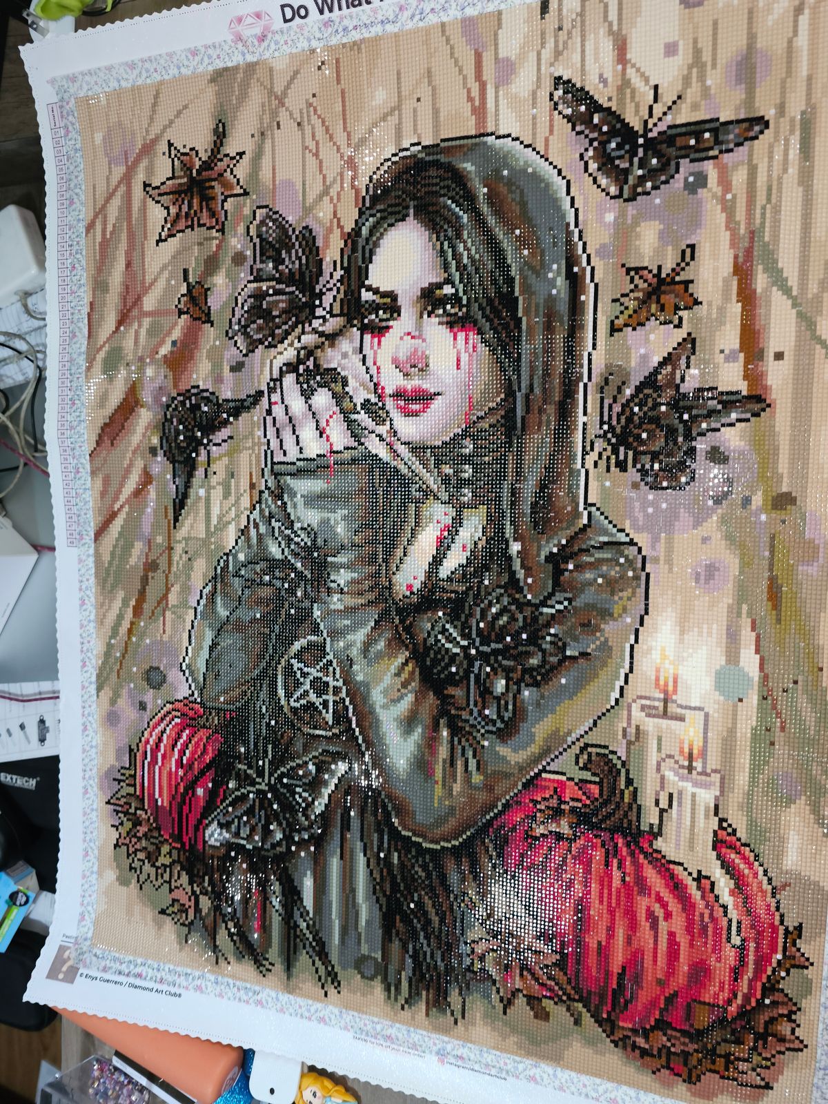 This is my first mystery kit. It was a bit of a hard transition to a monotone backdrop, but it makes sense to hide the finished picture. I won't post a photo of the finished canvas since I don't want to ruin the fun for anyone else.