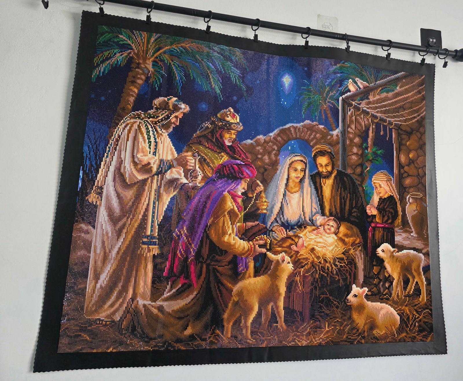 It is absolutely beautiful. I donated to our church and they insisted on hanging it right behind the pulpit.