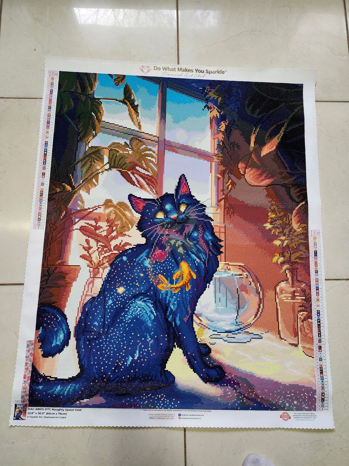 Beautiful rendering of Yuumei's art style, loved the mix of color blocking/gradient blocking background and the confetti in the kitty. I added enhancements from the drills DAC sells separately and it came out so wonderfully! I loved the colors so much, and the cat is so cute and mischievous. Loved this canvas and already started my next DAC masterpiece!