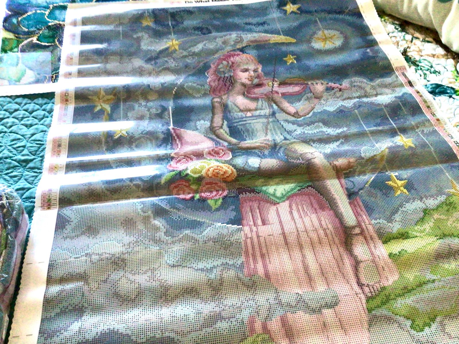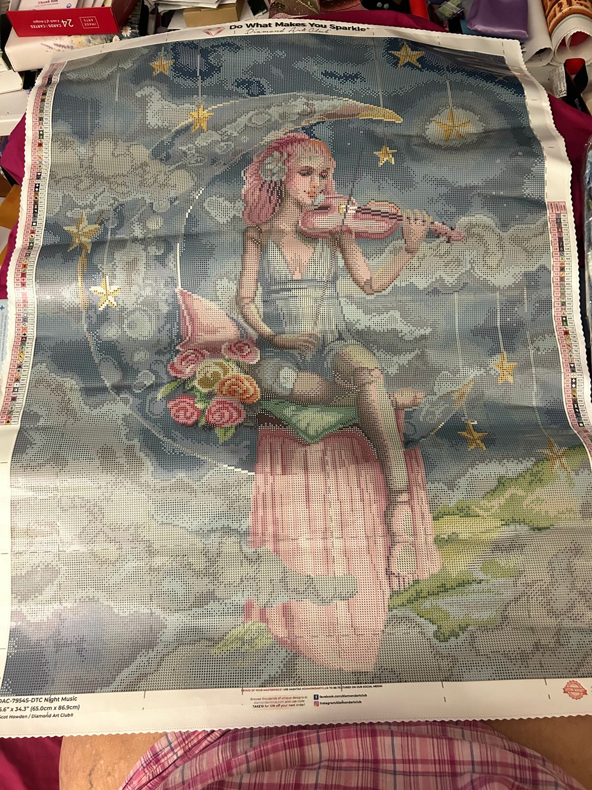The puppet (I assume, because she has visible joints) is so delicate and fragile, as are the colors. Beautiful shades of blue and pink. It would be gorgeous is a nursery or child's room. It's very large with over 99,000 drills. It will be my biggest project to date. I think I'll enjoy the time I spend on it because I love the colors.