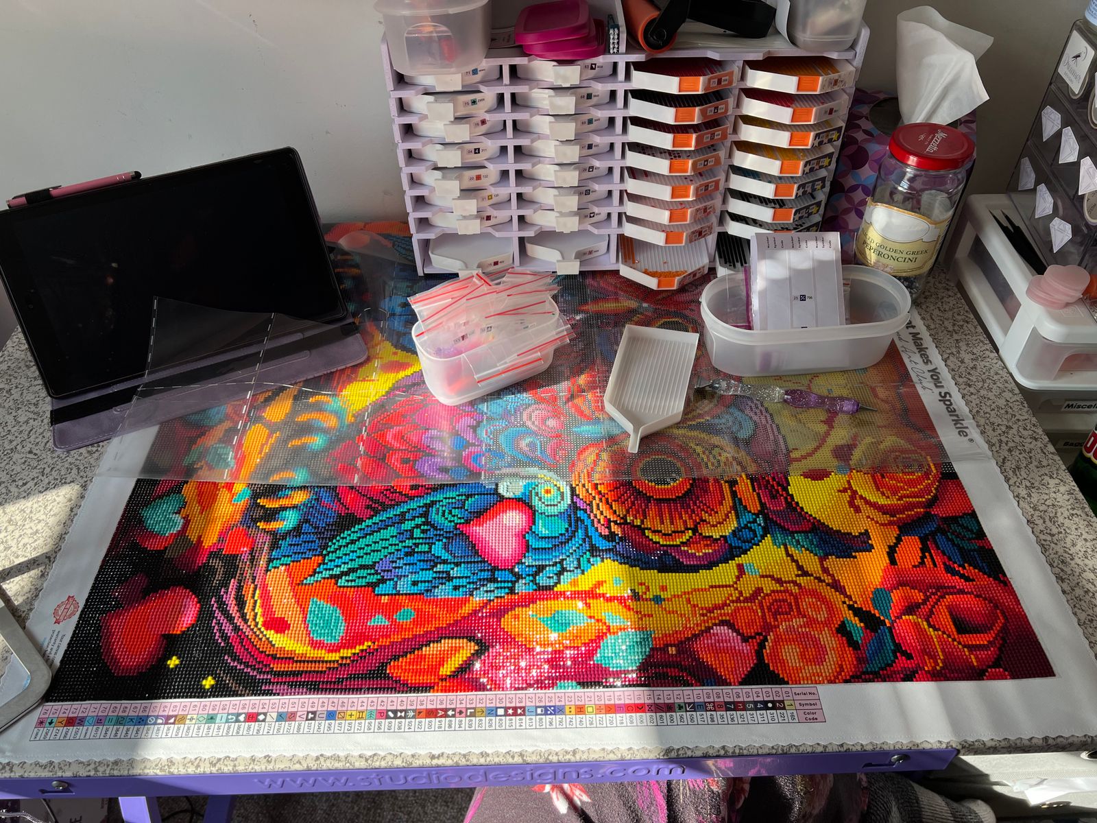 This painting is so bright and colorful! As always the canvas was soft, the drills great and the finished product beautiful. Love the perforated cover!
