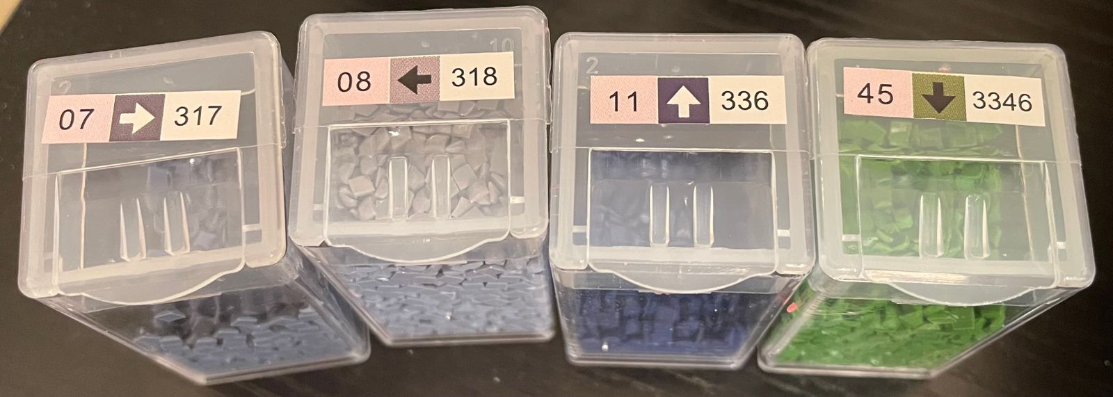 I’m am currently removing a bunch of drills from this canvas because I didn’t notice there are 4 different arrow symbols used in this canvas. I only double checked because the square area that I finished looked off. Why would anyone put 4 very similar symbols on a canvas. There must be thousands of distinctive symbols in the world..if not millions why would you use 4 similar symbols. I’m am so irked.