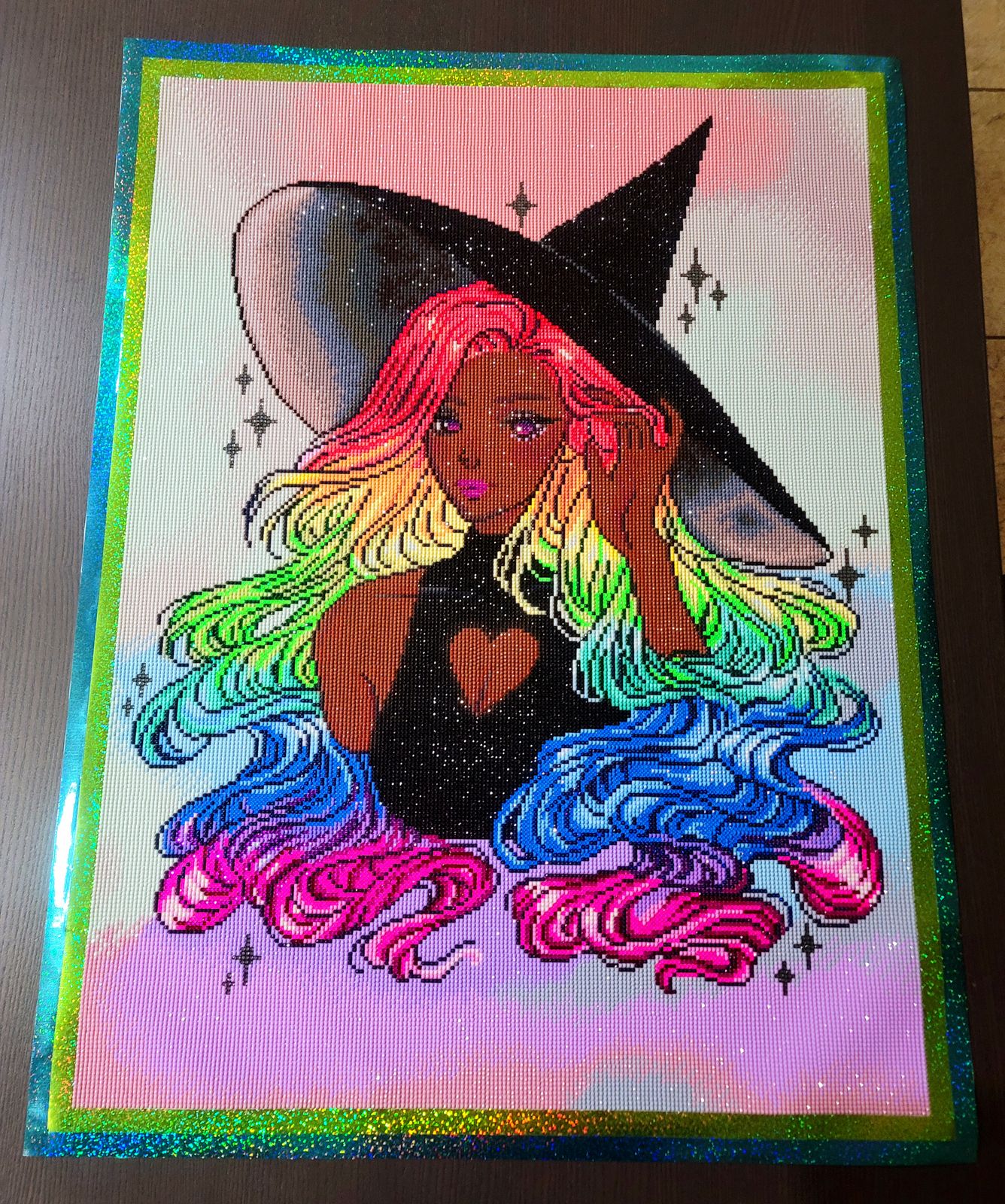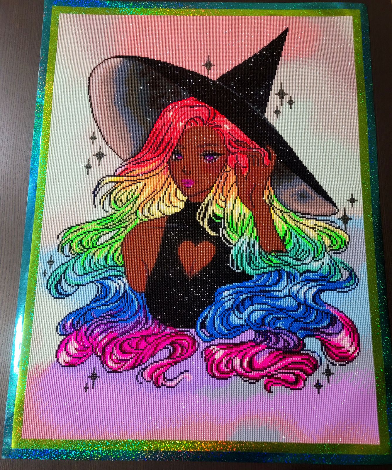 Listen to the magic calling out from the stars. This rainbow-haired enchantress, her vibrant locks swirling with color and charm, sends a strong message of love to creatures of every realm.