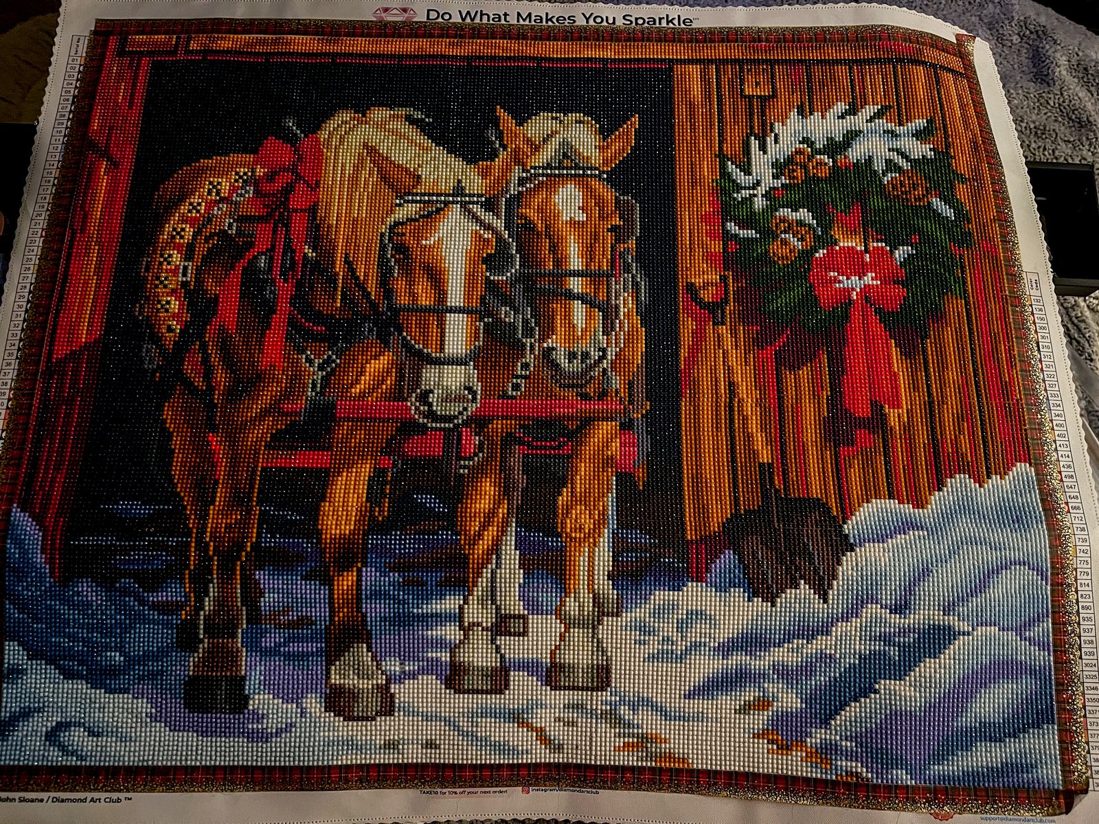 This was a joy to work on. I loved watching it come to life with each drill I placed. I entered it in the county fair and won Reserved Champion which was exciting. Chuck Pinson’s diamond paintings are beautiful and great to acquire.