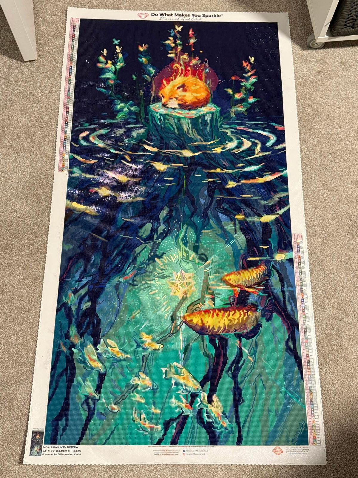 great rendering of the fish and fox — the colors really popped off the canvas because of the color contrast
