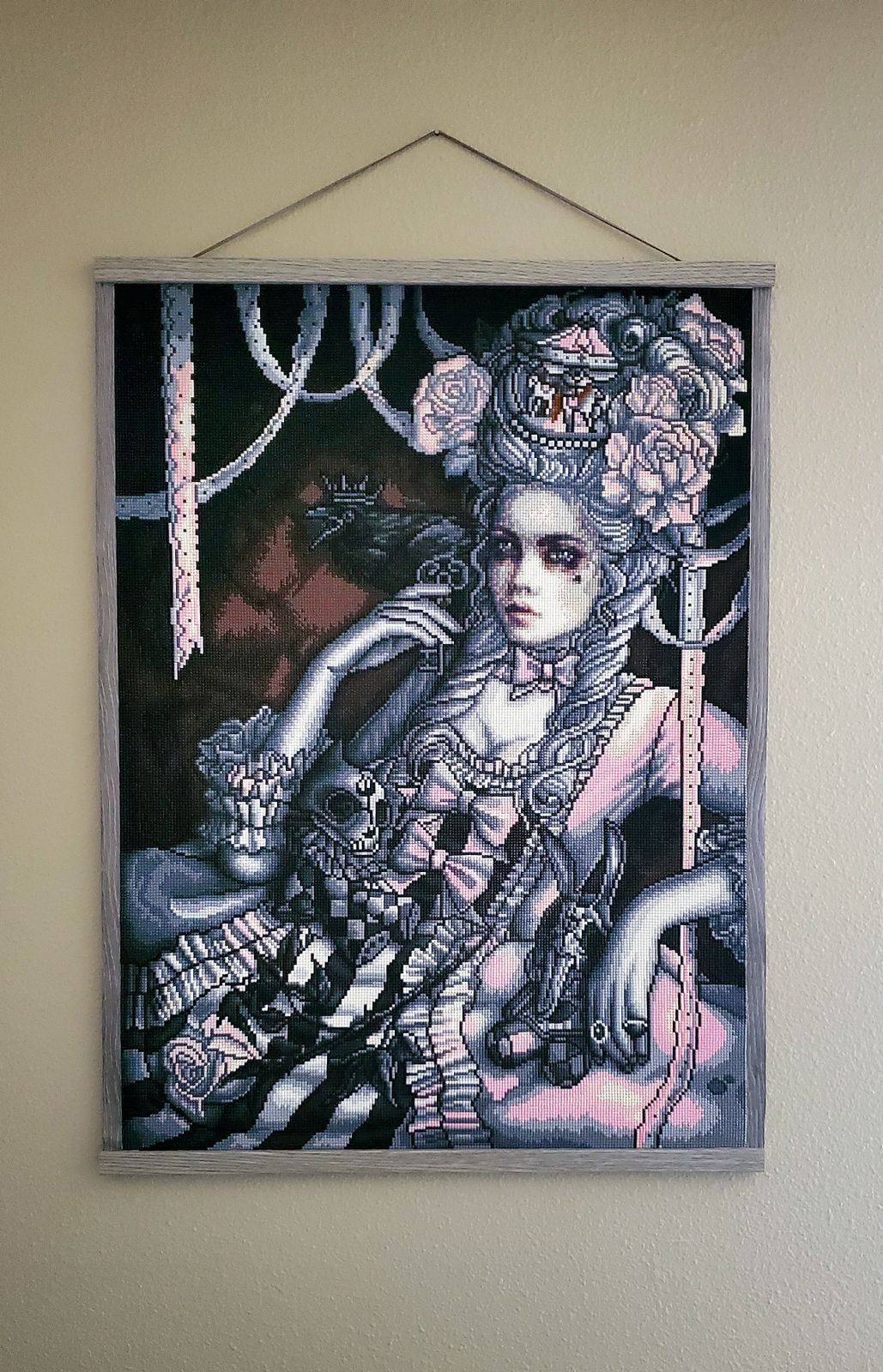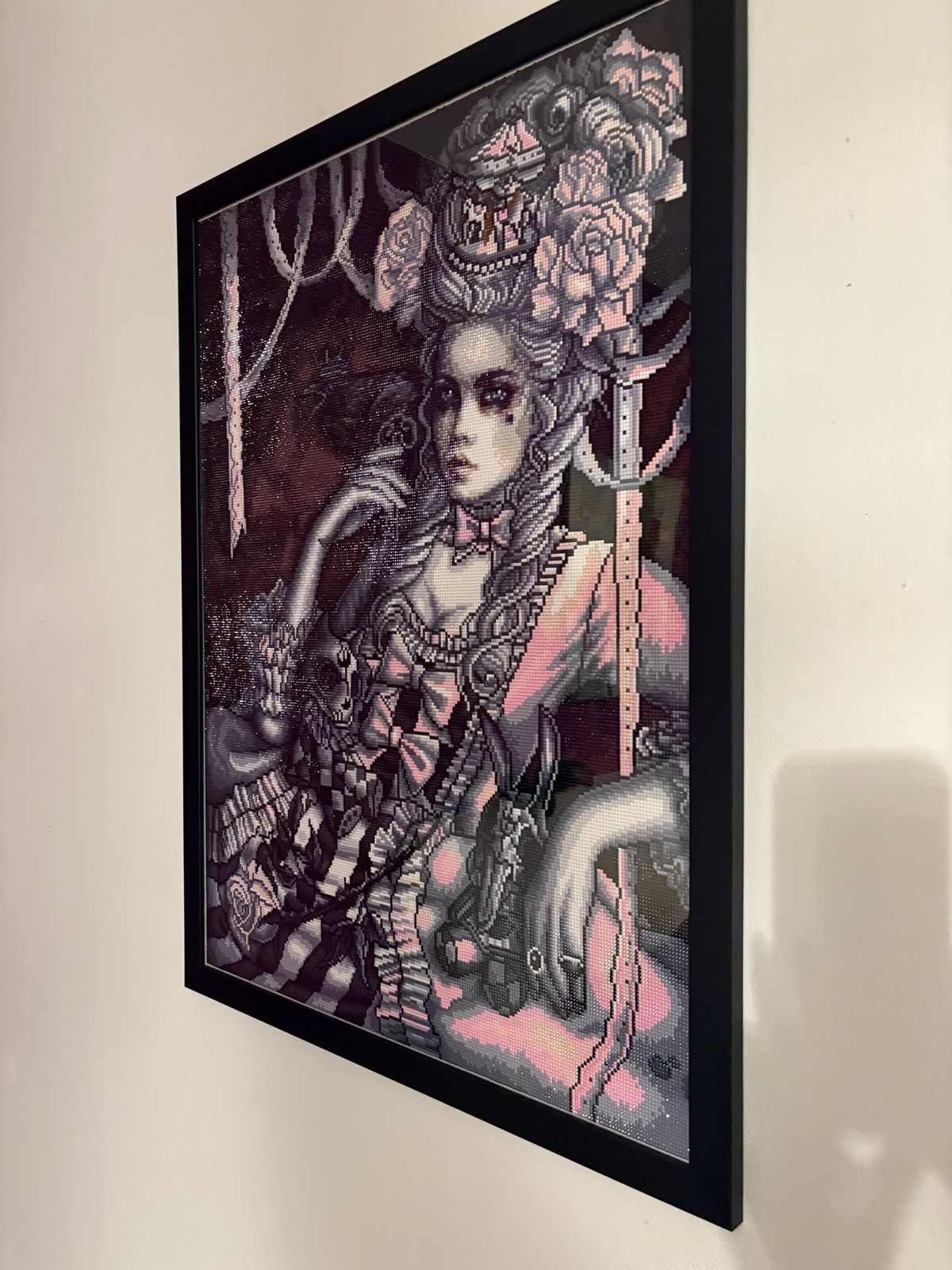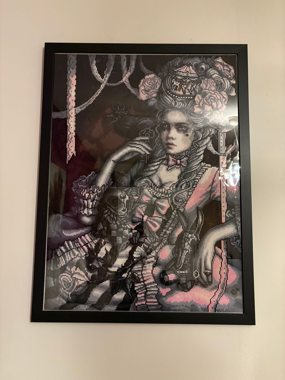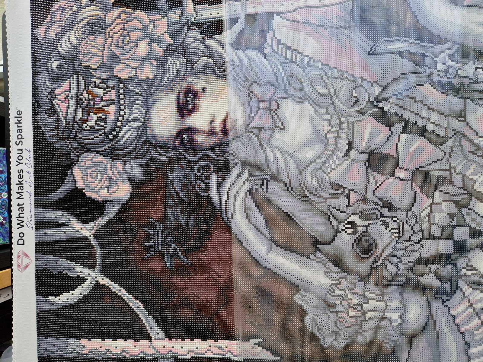 I am one of the people who actually like the more dark styles of art work and I love the artist Enys Guerrero is the only artist I have gotta many diamond paintings from because each time I get them they don't disappoint. This one is no different Rococo Dream is one of the diamond paintings I wanted the most to work on and I am so happy I got it I love everything about it i love how because there's more dark colors it makes the other colors stand out. 10/10 if you like dark style of art work I differently recommend getting this one.
