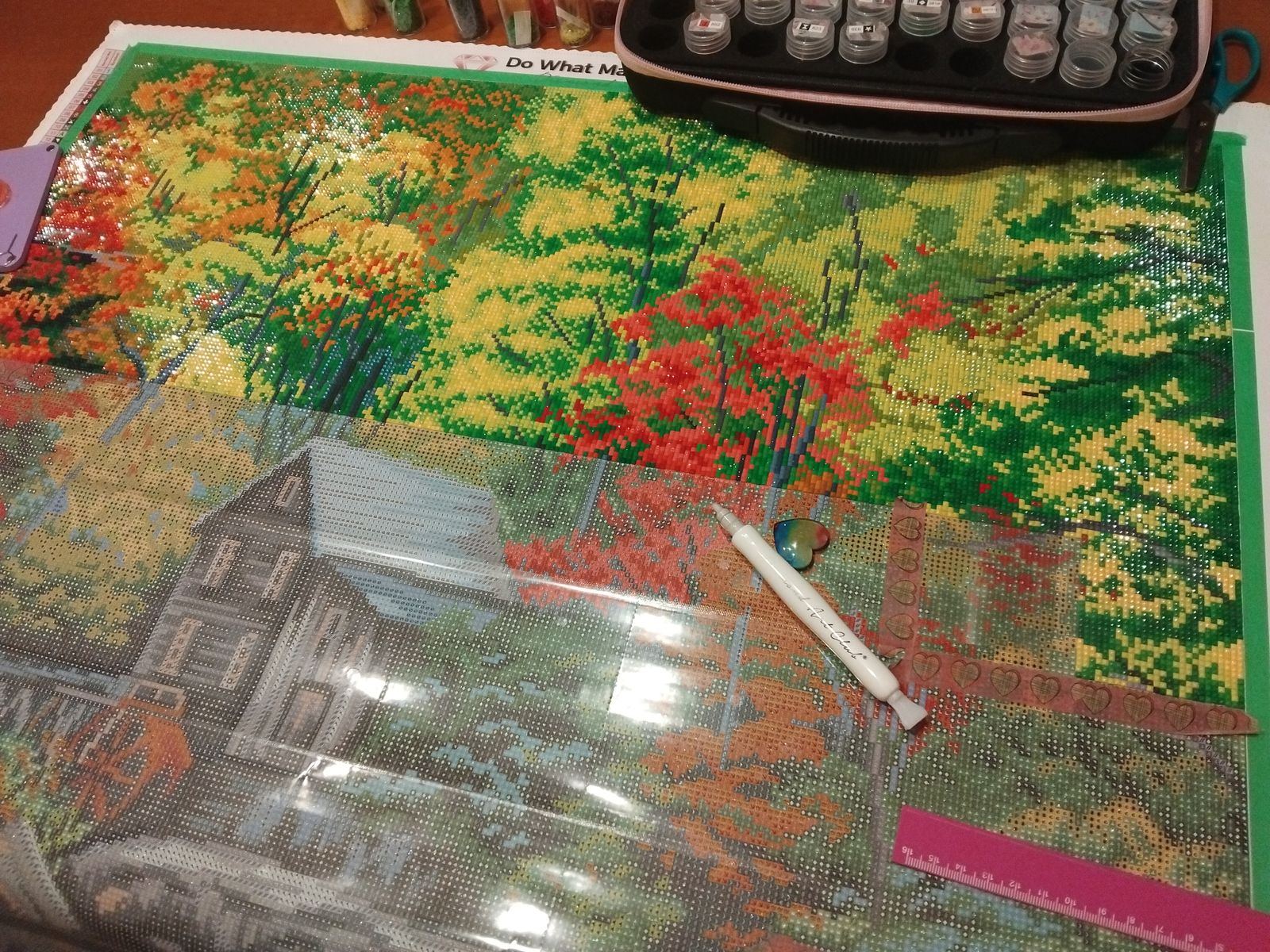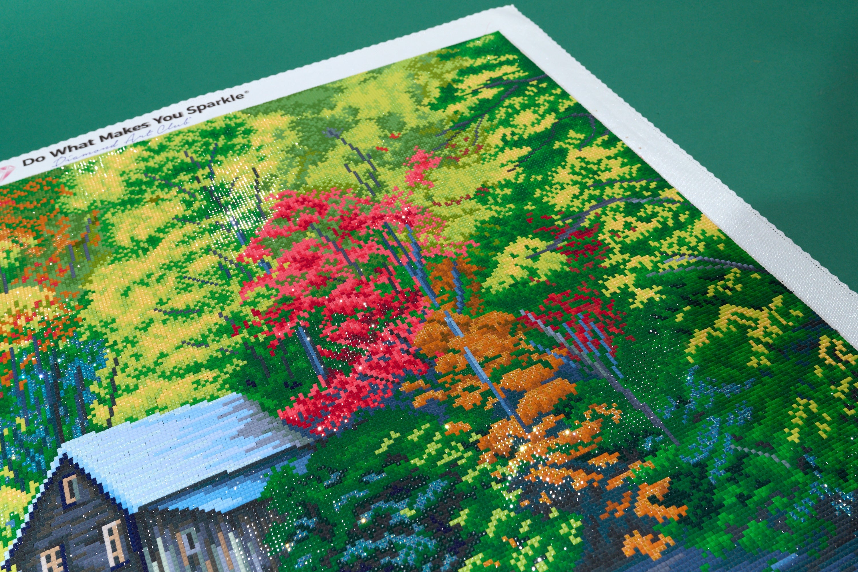 Diamond Painting Rustic Autumn Mill Waterfall 27.6" x 37" (69.9cm x 93.8cm) / Square with 51 Colors including 2 ABs and 4 Fairy Dust Diamonds / 105,937
