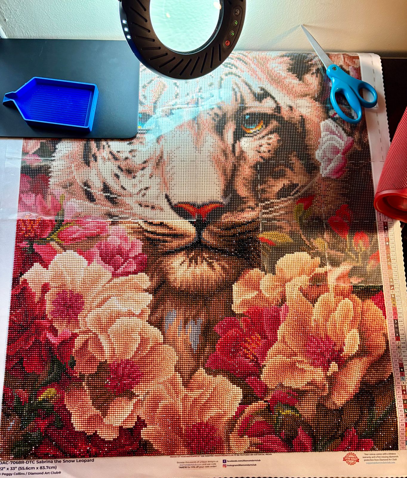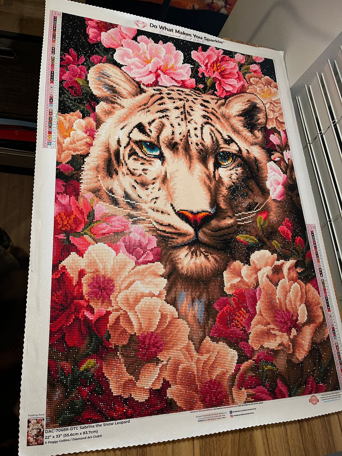 Absolutely beautiful snow leopard and flower arrangement. I’m enjoying how this is turning out so far.