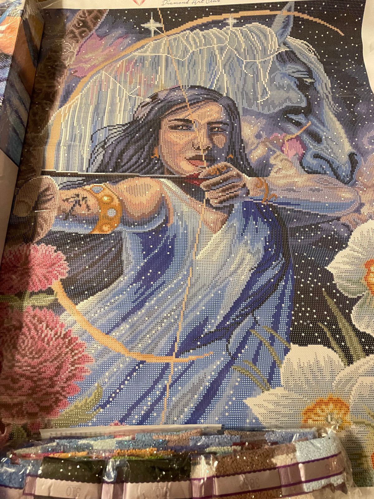 Ein sehr schönes Bild, habe es gerade angefangen und bin schon begeistert über die schönen Diamanten und die tolle Leinwand und über den klaren Druck, bin gespannt auf das Endergebnis. Freue mich über das Ergebnis