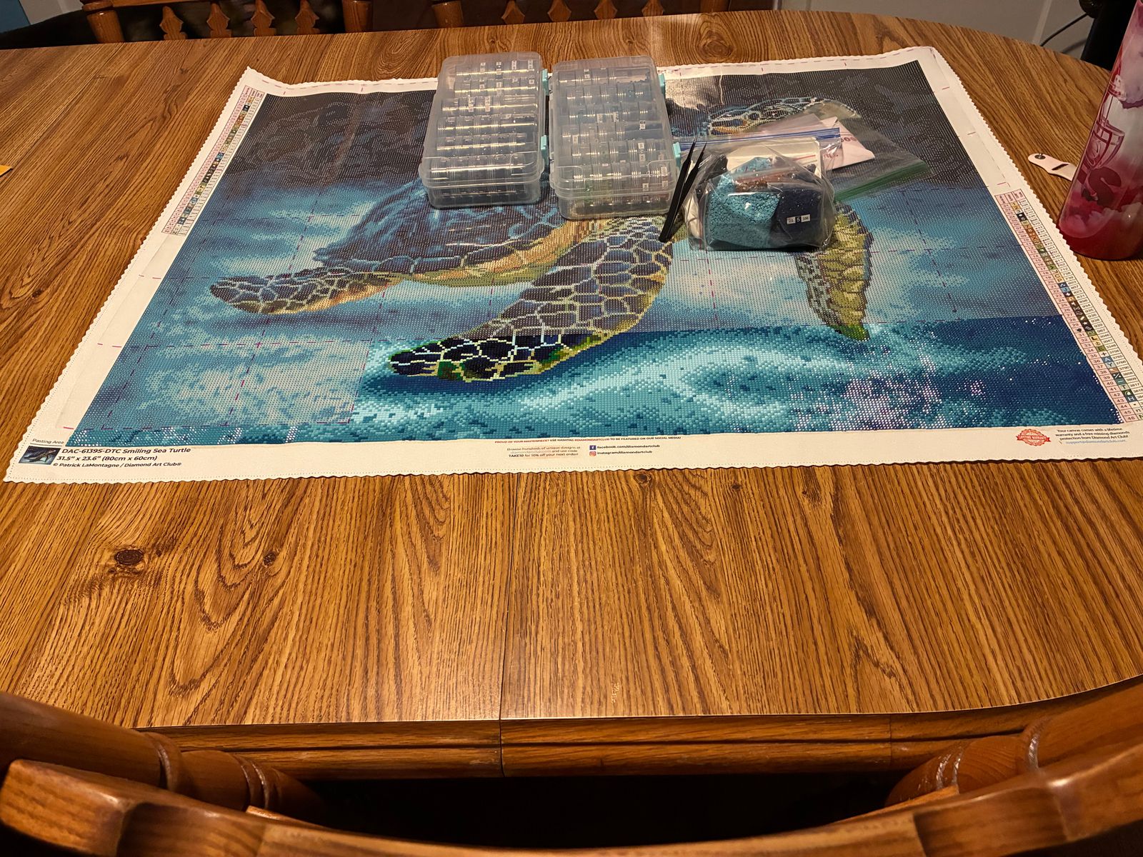 This was my largest diamond painting . It was so fun to work on it. At first I wonder gosh how long will this take me. Once I started it was awesome ! Didn’t want to stop working on it! Doing a new one the orange Dragon! Even bigger !