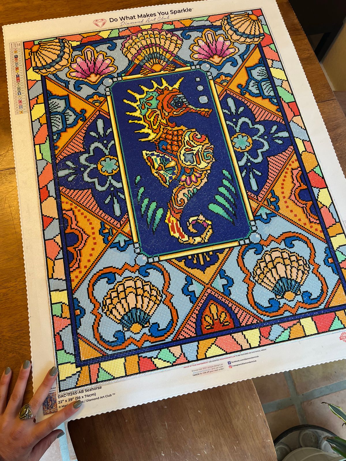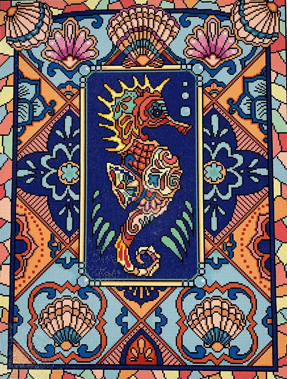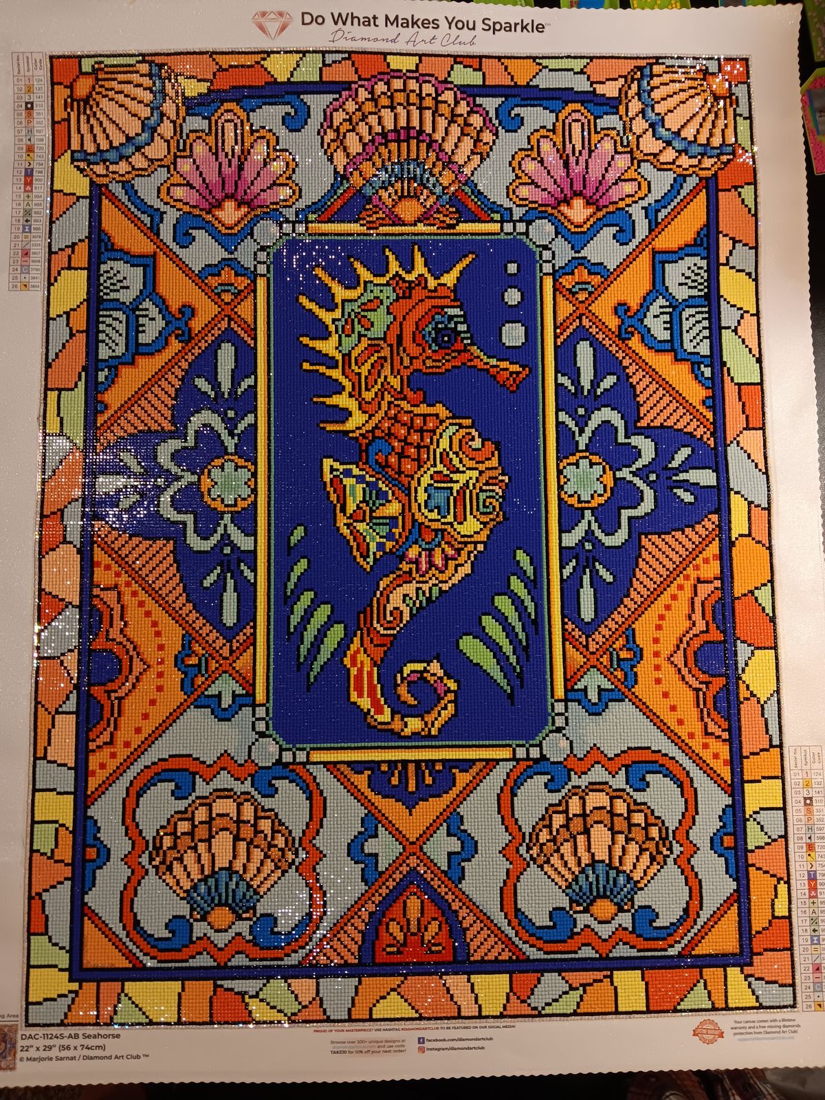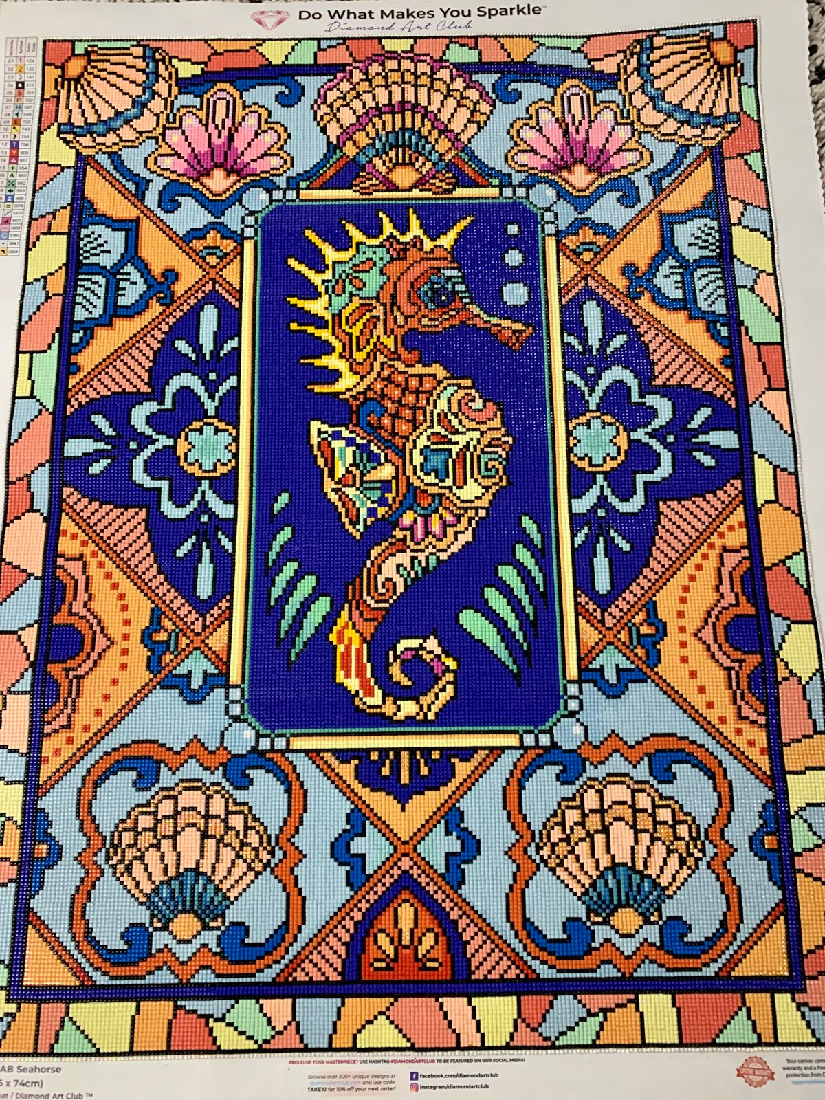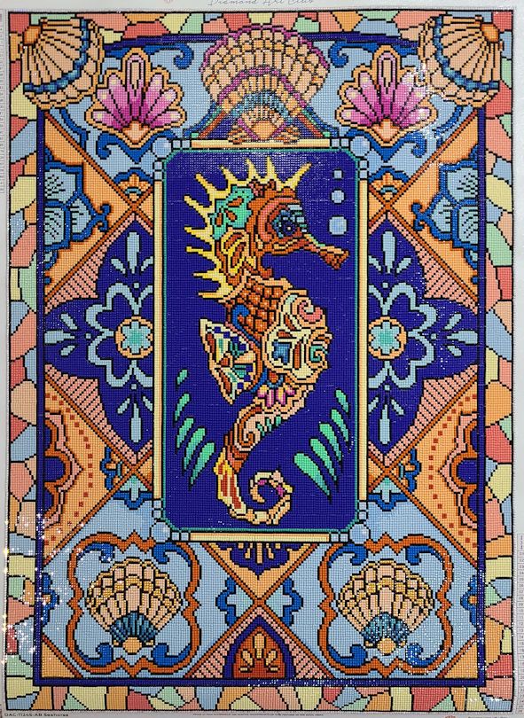 Purchased this kit way back in June of 2020 and had it on the back burner all this time. Loved the bright Spring like pastels in it. The design was fun and challenging. I made some design changes and had a blast adding AB's here and there, especially on the Seahorse. Experimented with color shading, especial with the AB's. Really enjoyed working on this one and it looks fantastic. Highly recommend this one for a change of pace for the design and artwork.