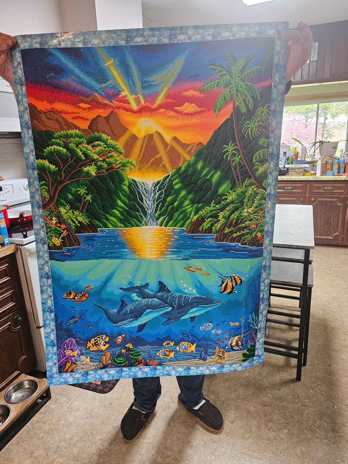 Drill by drill sewing this canvas come alice with color was AWESOME! I would LOVE to swim in this bay!