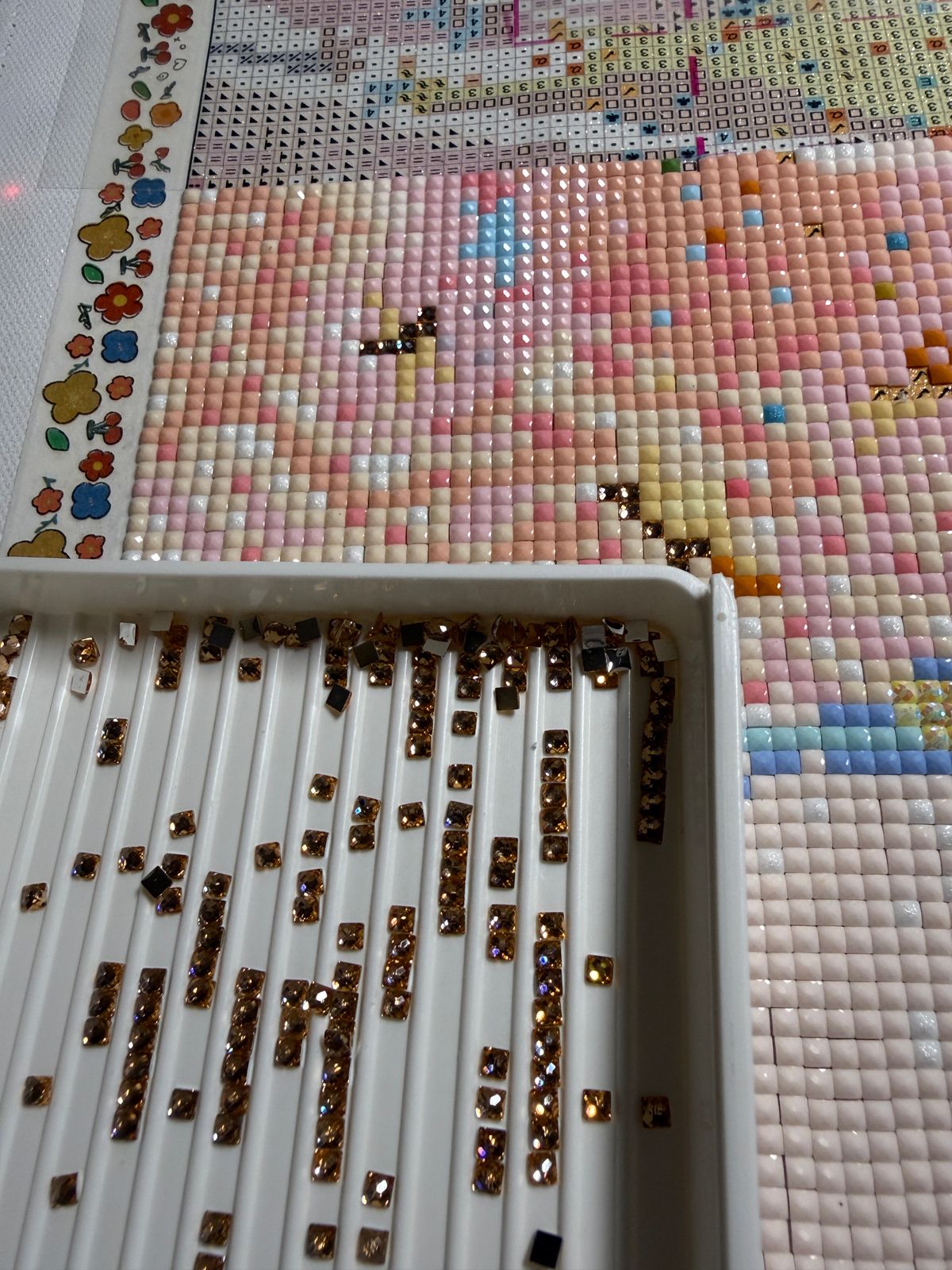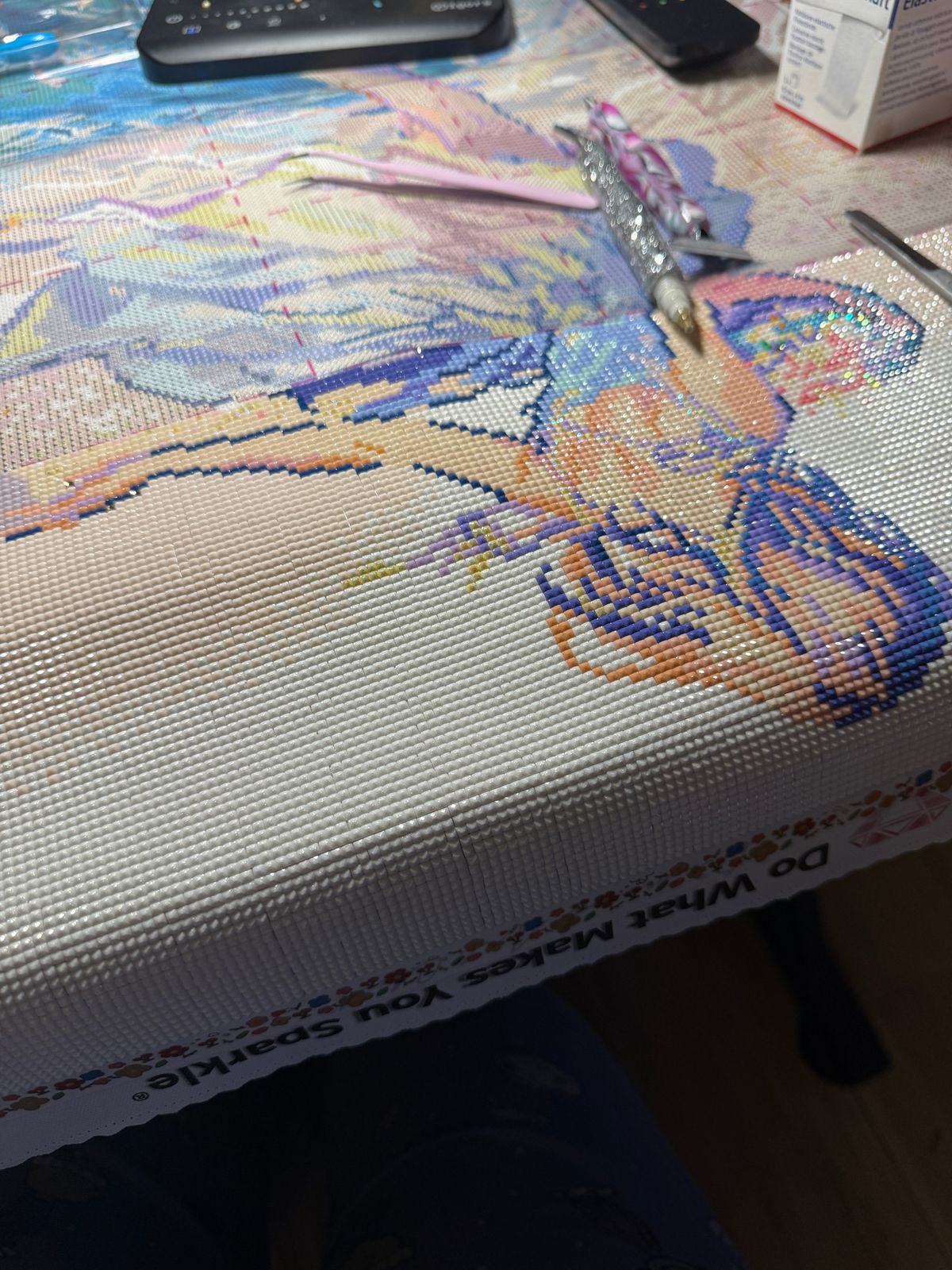 This is the largest diamond art canvas that I have done yet. It is just stunning. This one is going in my bedroom. The color palate is both exciting and soothing to work. The glimmering gold drills are classy instead of Vegas like I first thought that they would be. It is a tasteful glimmer to the palate that mimics the way that things of the water can sparkle.