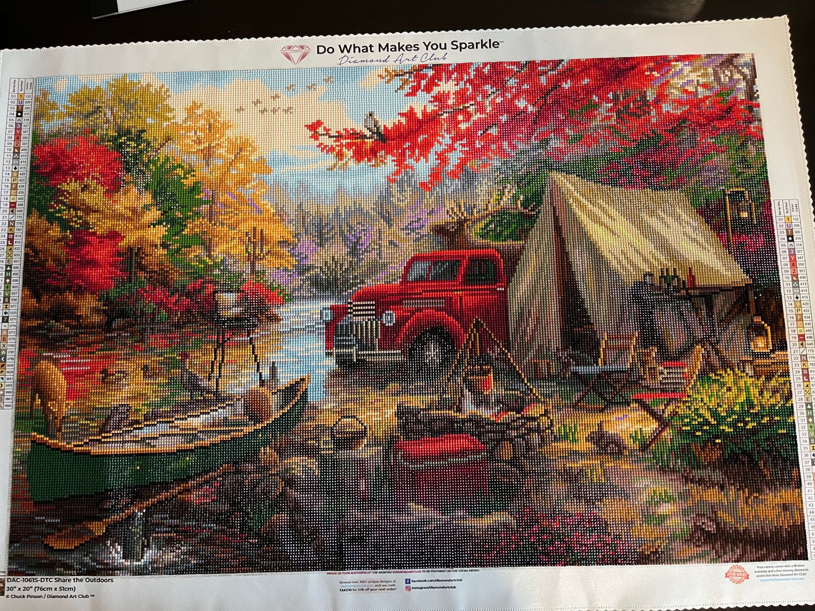 We camp a lot and this painting spoke to me! Not only do I love Chuck Pinson pieces but the concept of the great outdoors was too good to pass up. The animal details are fantastic and everywhere I look has another bird or rabbit or detail hidden. It makes me feel like I can smell the campfire. Love diamond art and Chuck Pinson!!