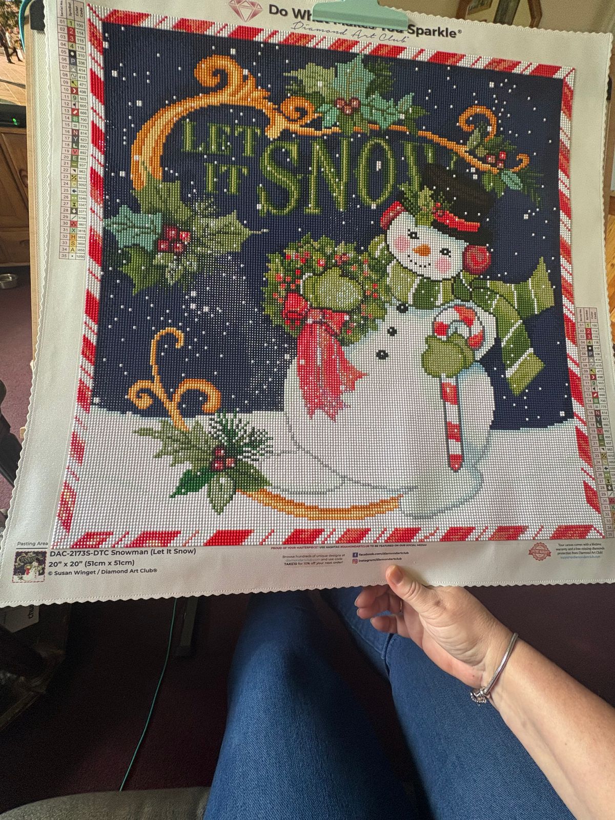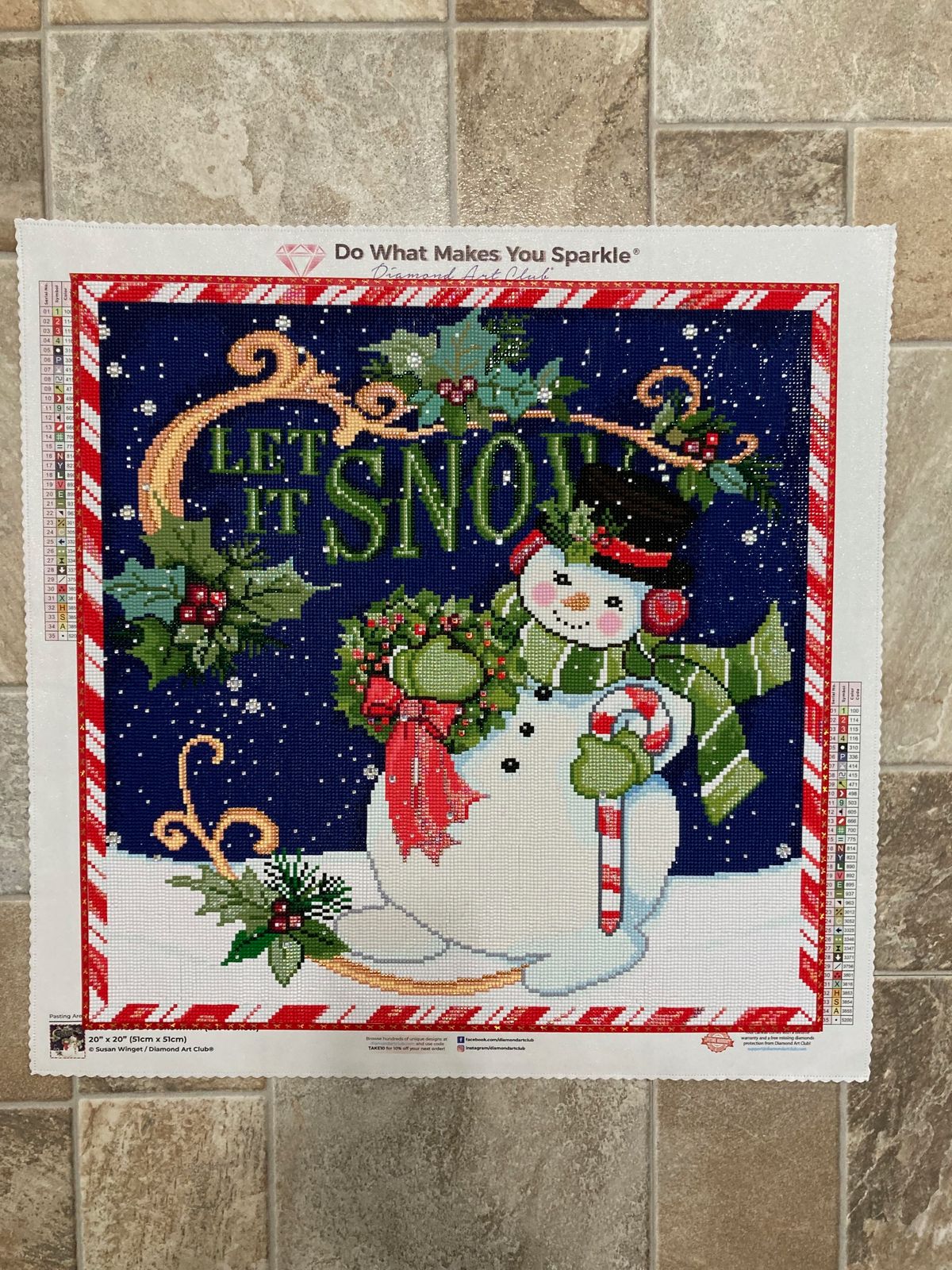 This little snowman was a dream to work on. He sparkles of snow and chill. Perfect for a beginner or experienced diamond painter alike. Enjoy!!