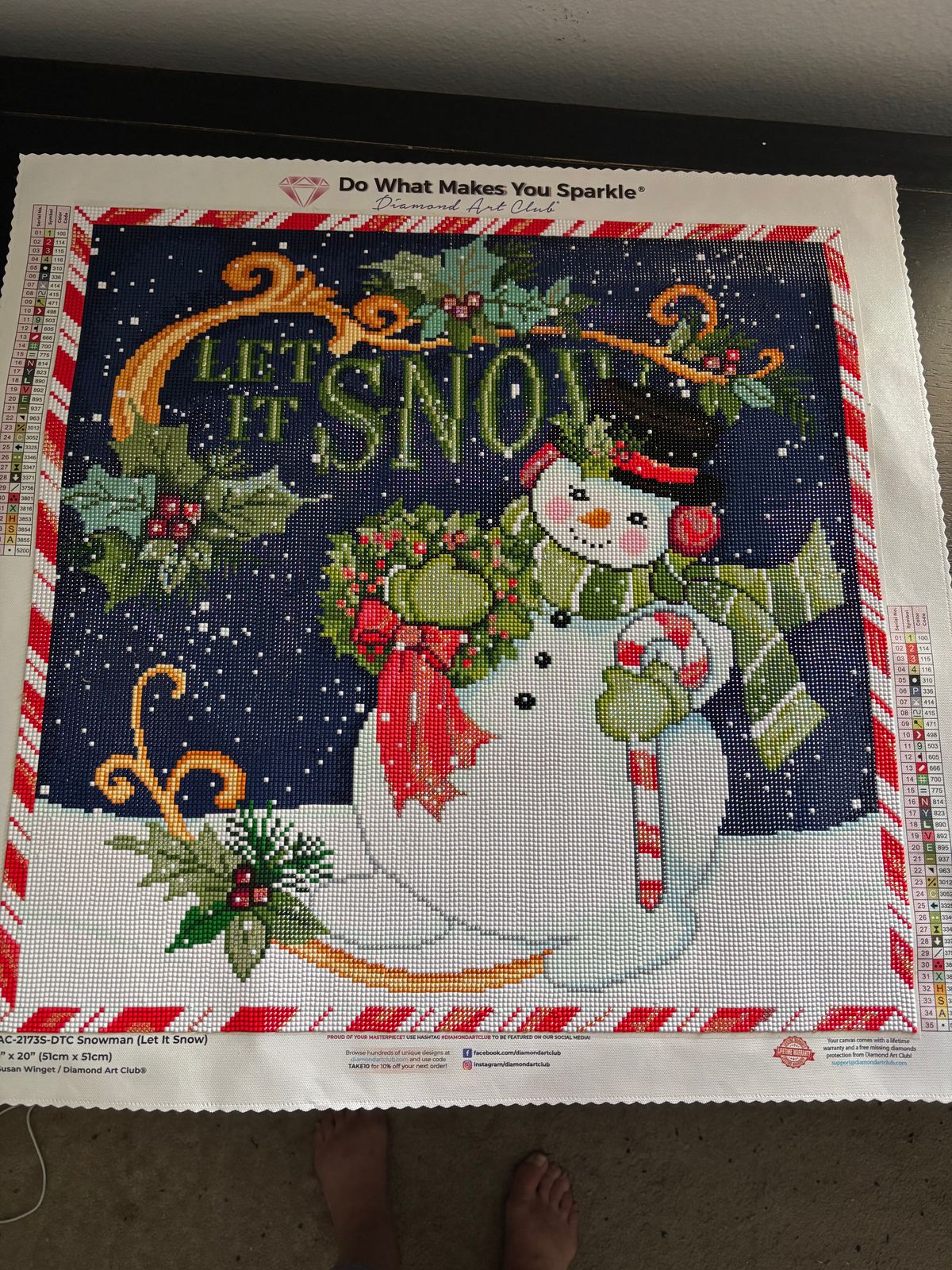 This was really fun to do but I noticed there were some lines off in the art work. Unfortunately, I noticed after I had already placed the diamonds. I didn't want to figure out where the lines should have been and just continued. They really aren't that noticeable except for the candy cane and even then you still have to look for it. Overall though I still really like it!