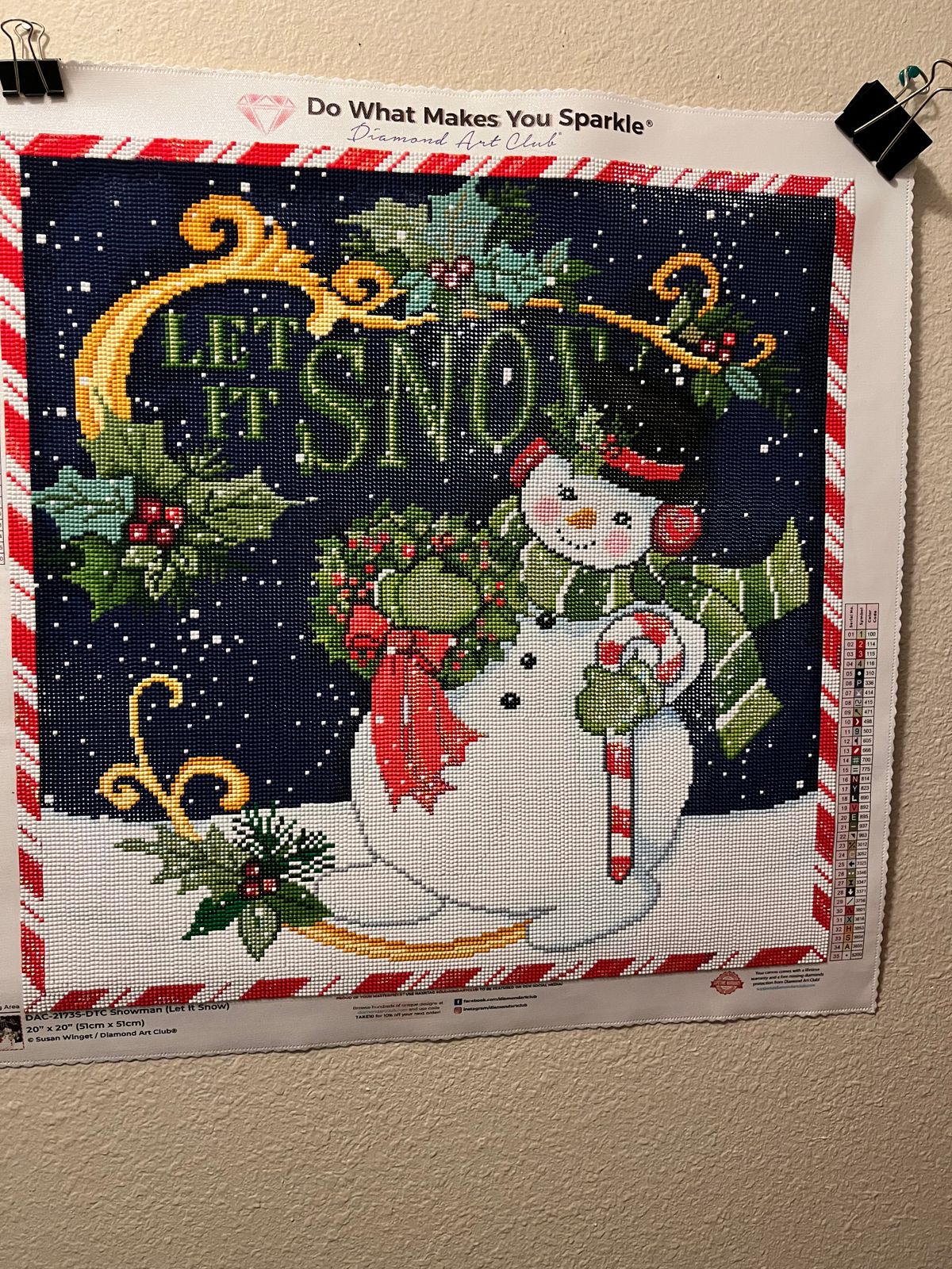 Love the vintage look of this image and it was a smaller size so it worked up quickly. Glue, drills, and canvas all great quality. The candy cane border really elevated the look too.