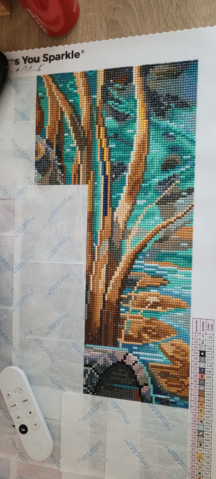 This painting was a pleasure to work on. Though it took me since Thanksgiving to March to complete, every moment made it worth the final product. I did struggle with having a lot of "junk" drills. They would have holes in them or be misshapen. Made it through though.
